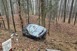 V Bohuslavicích se vůz zřítil ze silnice a zastavil se až mezi stromy
