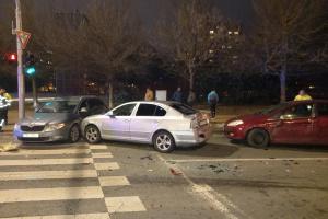 Při nehodě jedno auto skončilo mimo silnici, druhé na boku
