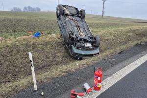 Auto skončilo na střeše, řidič v péči zdravotnické záchranné služby