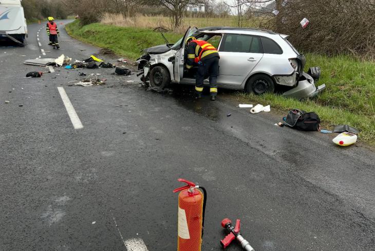 V pátek ve 13:46 hodin vyjela jednotka profesionálních hasičů ze stanice Ústí nad Labem k ohlášené dopravní nehodě osobního automobilu s karavanem u obce Strážky na Ústecku.