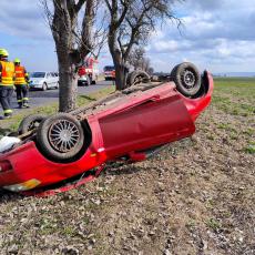 Hasiči provedli protipožární opatření a otočili auto na kola. Nedošlo k žádným vážným zraněním. Jeden z cestujících měl pouze malou řeznou ranku na hlavě.