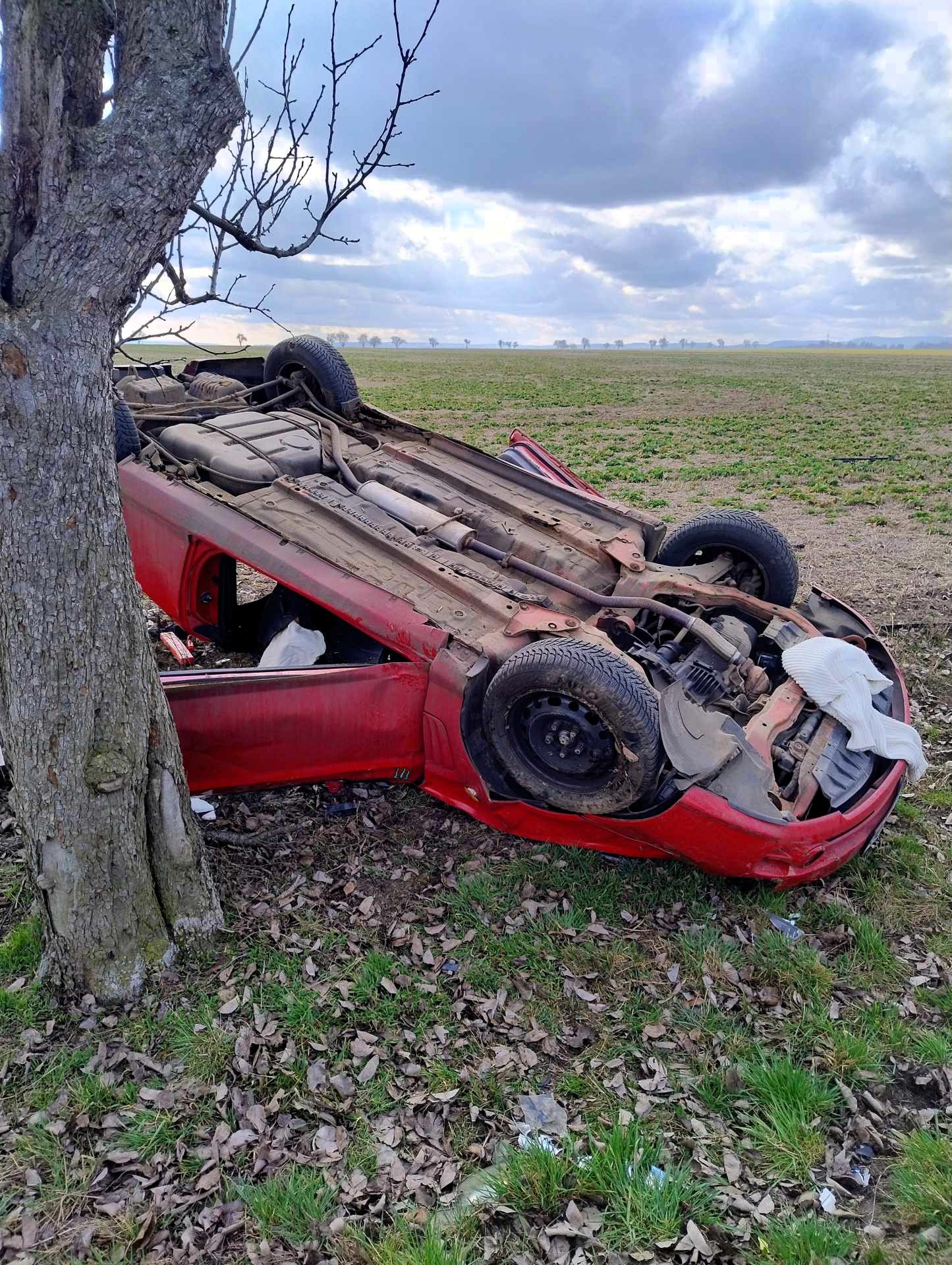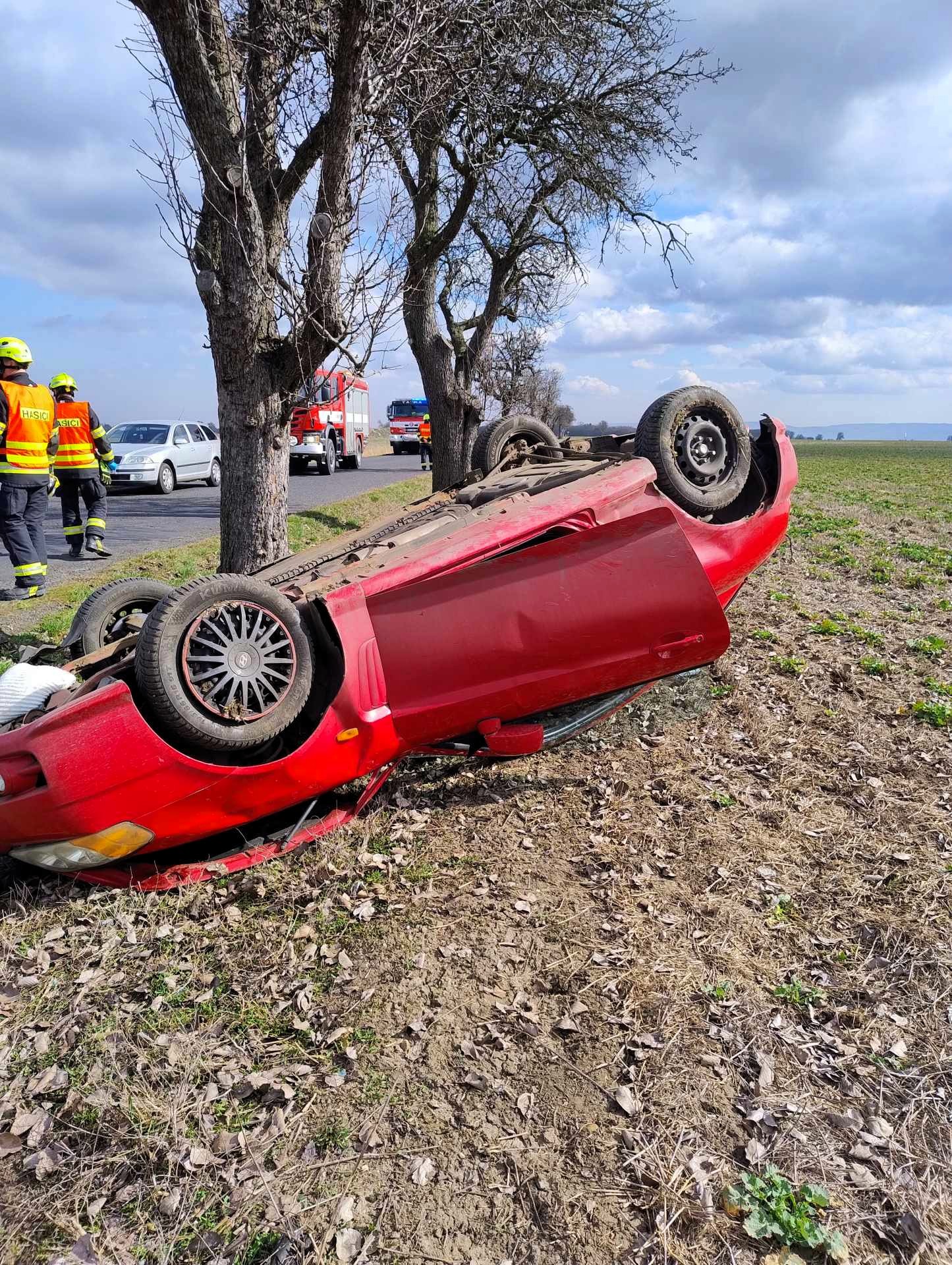 Ve čtvrtek ve 12:04 hodin jsme přijali zprávu o dopravní nehodě osobního automobilu na silnici III/22521 v části vedoucí z Čeradic do Větrušic na Žatecku. Auto skončilo na střeše na poli.