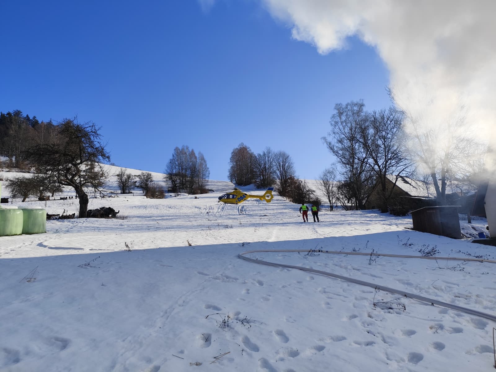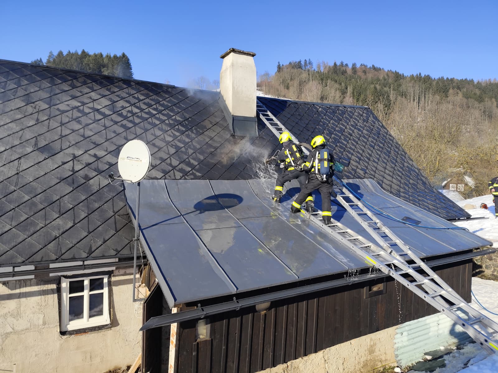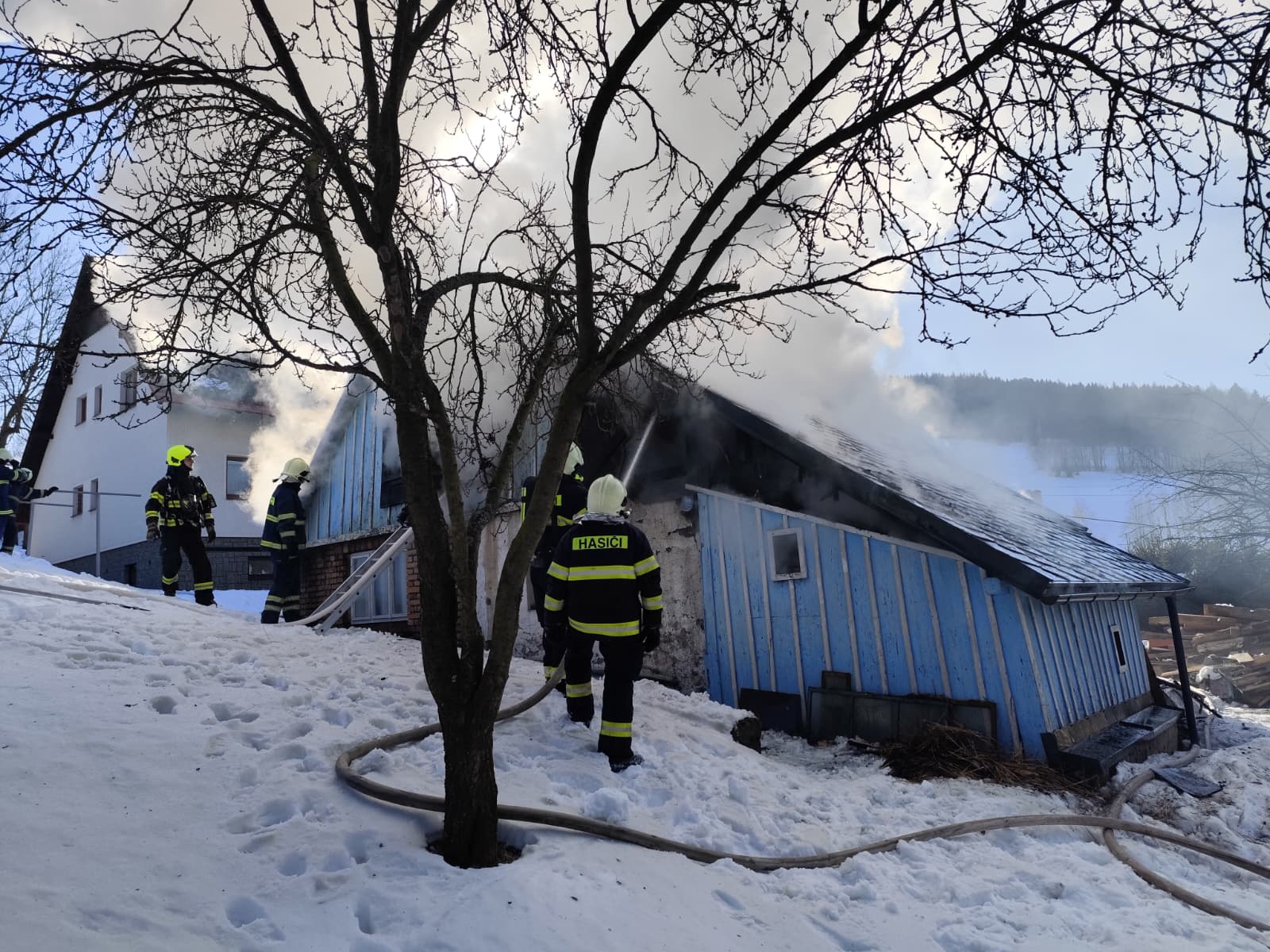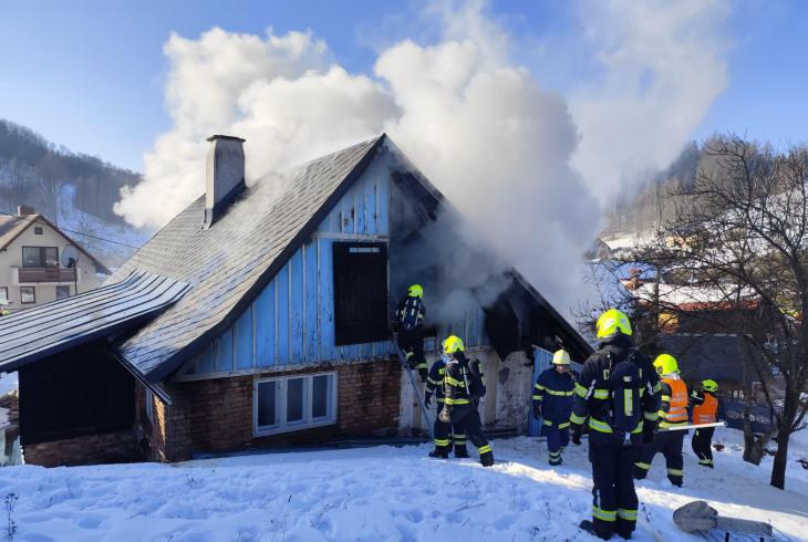 Požár uvnitř objektu (chalupa) byl nahlášen na tísňovou linku 112 krátce před 11. hodinou.Na místo události bylo povoláno sedm jednotek. Hasiči nasadili čtyři vodní proudy a vysokotlaké hasicí a řezací zařízení CCS Cobra.