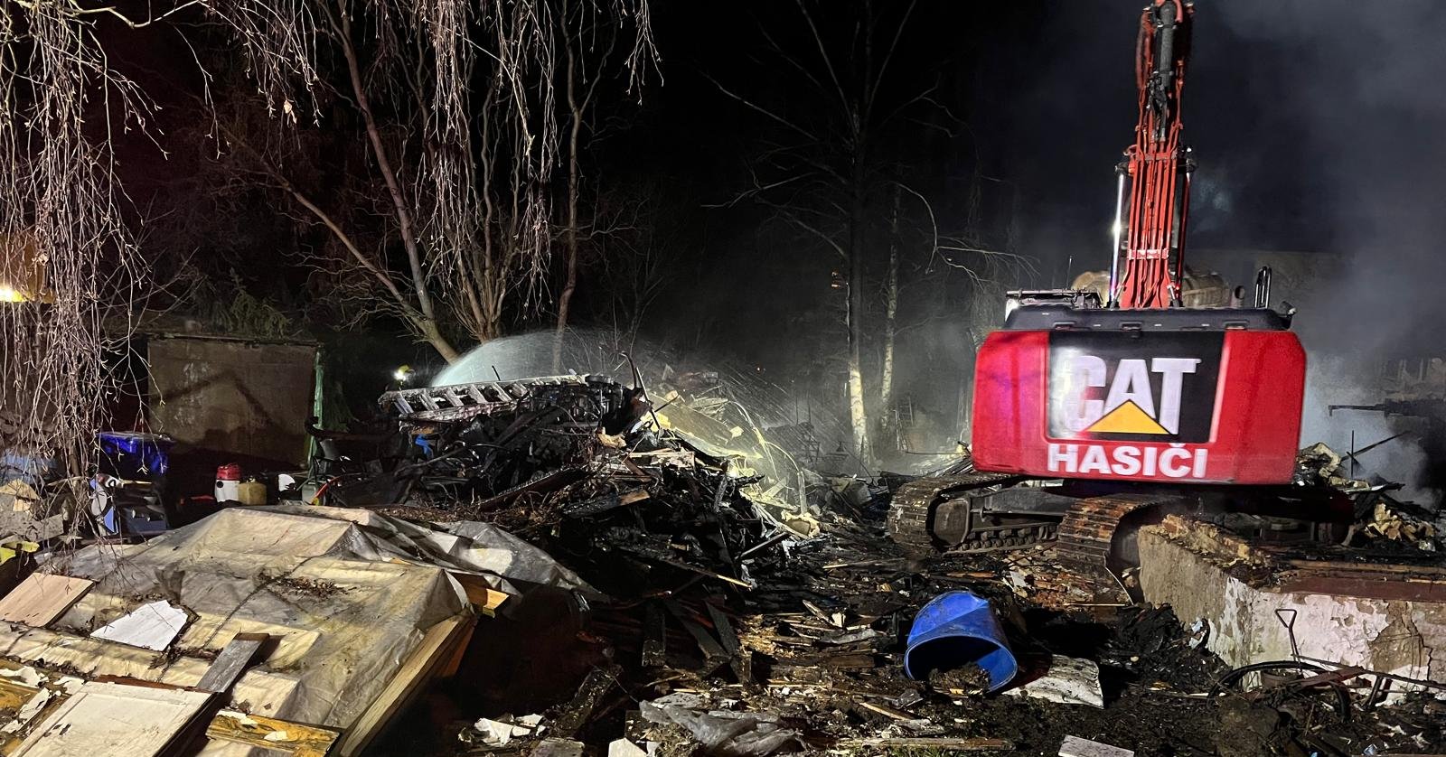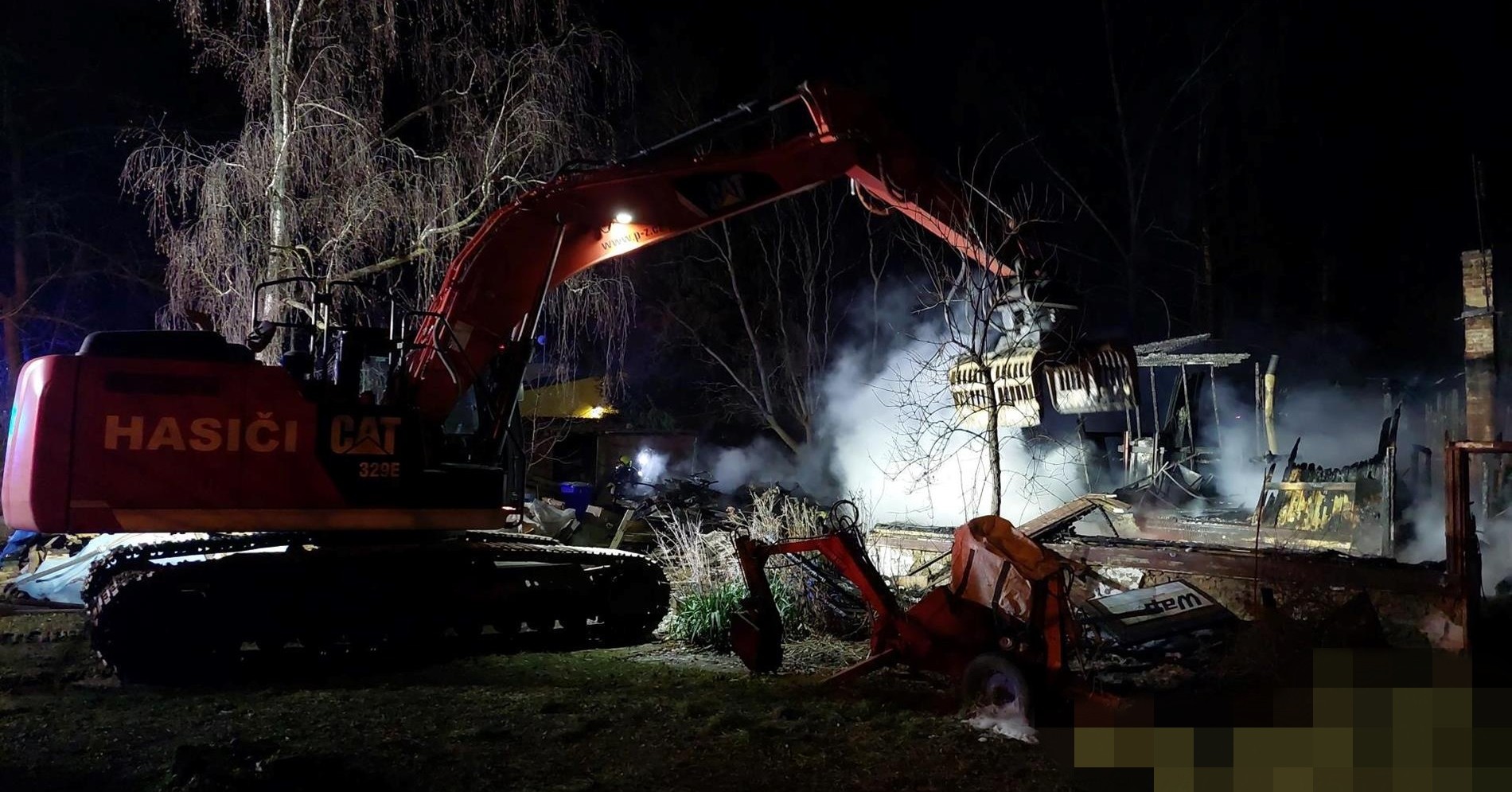 Krátce po třetí hodině si velitel zásahu na místo povolal rypadlo ze Záchranného útvaru. Důvodem byla bezpečnost zasahujících, jelikož se v prostoru požářiště vyskytovalo větší množství sutin.