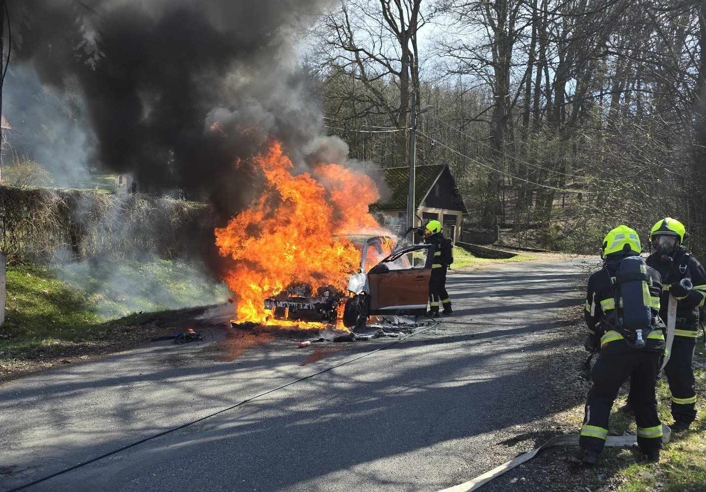 V době příjezdu první hasičské jednotky na místo bylo již celé vozidlo v plamenech. Na likvidaci požáru hasiči nasadili dva proudy (jeden vysokotlaký a jeden proud C) a během pár minut jej dostali pod kontrolu.