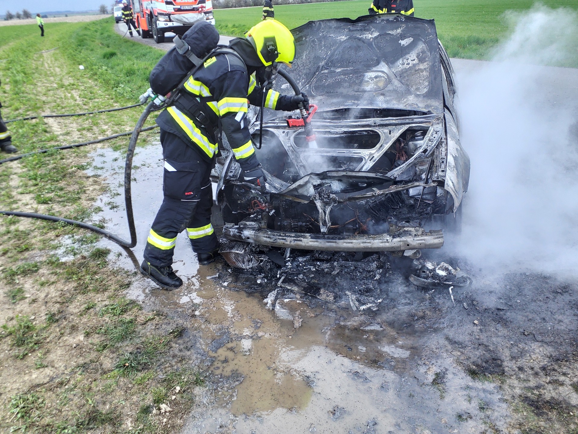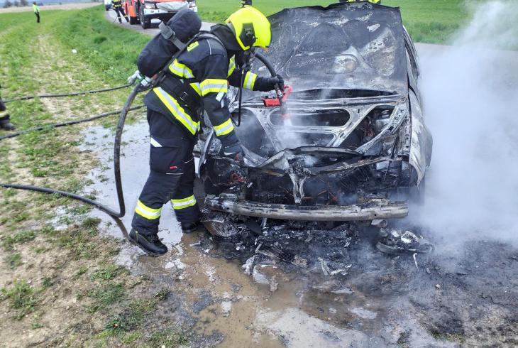V sobotu v 16:12 hod. vyslalo Krajské operační středisko profesionální jednotku z HS Chrudim a dobrovolnou jednotku Chrast k požáru osobního automobilu na silnici č. 35512 u obce Rosice.