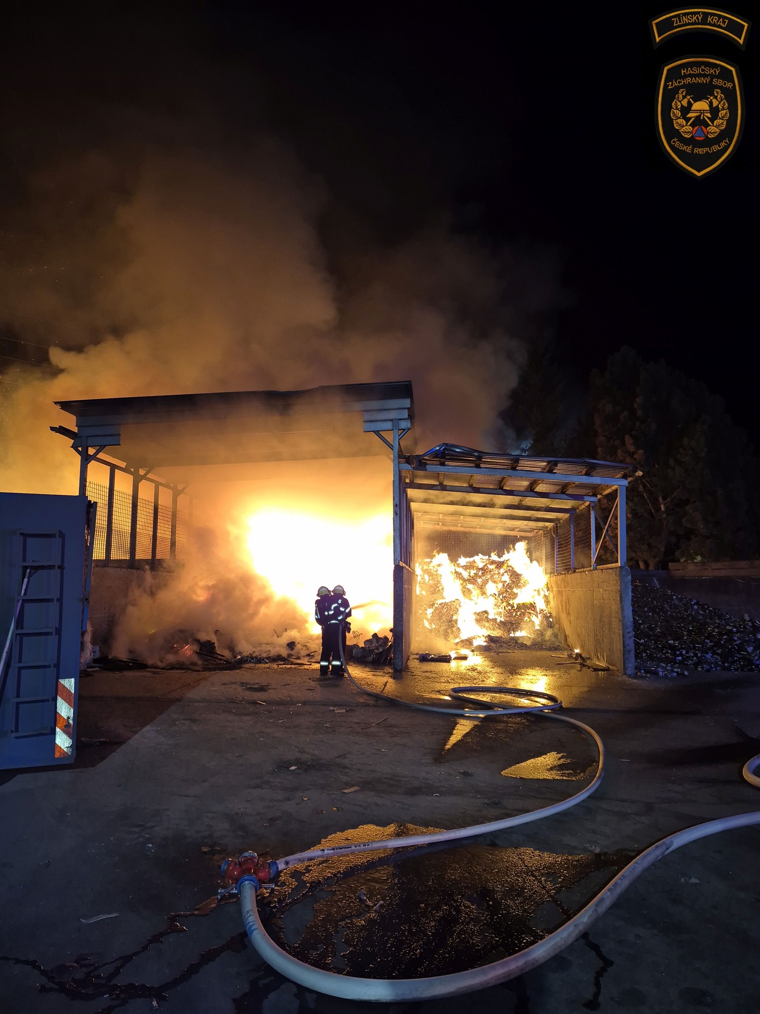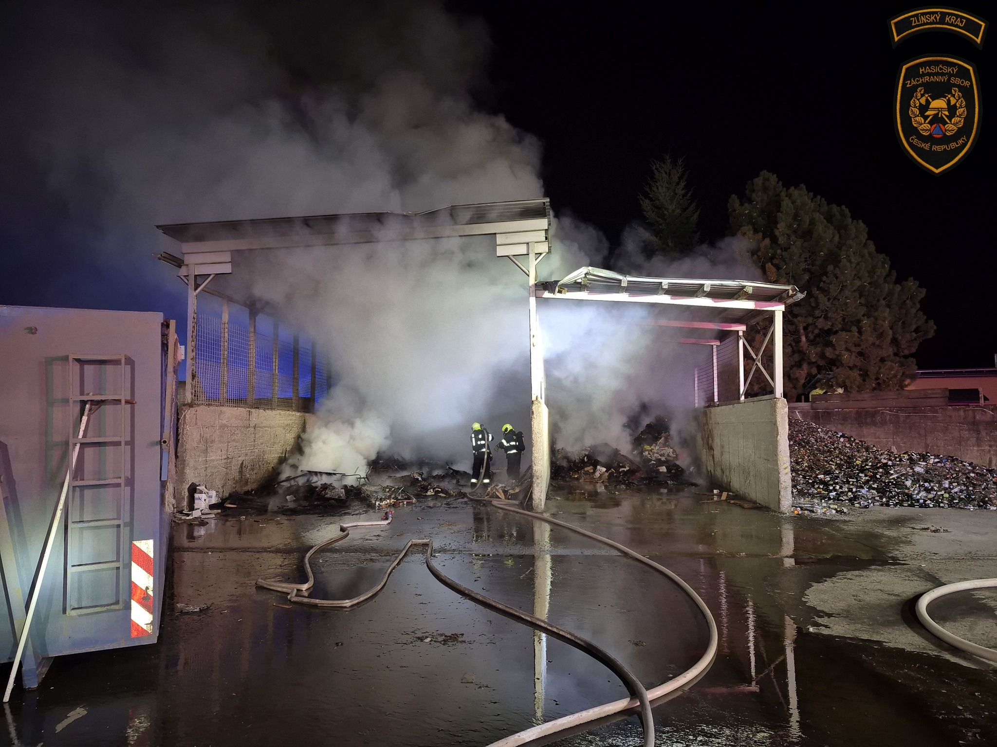 K prvnímu požáru vyjeli hasiči v úterý krátce před půlnocí do Krásna nad Bečvou, kde došlo k požáru odpadu uvnitř místního areálu. Na místo byly povolány také jednotky dobrovolných hasičů z Krhové, Poličné a Hrachovce. Po příjezdu zahájili hasiči okamžitě hasební práce. Následně byl na místo povolán nakladač, který vyvážel hořící materiál na betonovou plochu, kde jej hasiči dále dohašovali a prolévali vodou. Předběžná škoda byla vyčíslena na 100 tisíc korun. Příčina vzniku požáru je nadále v šetření.