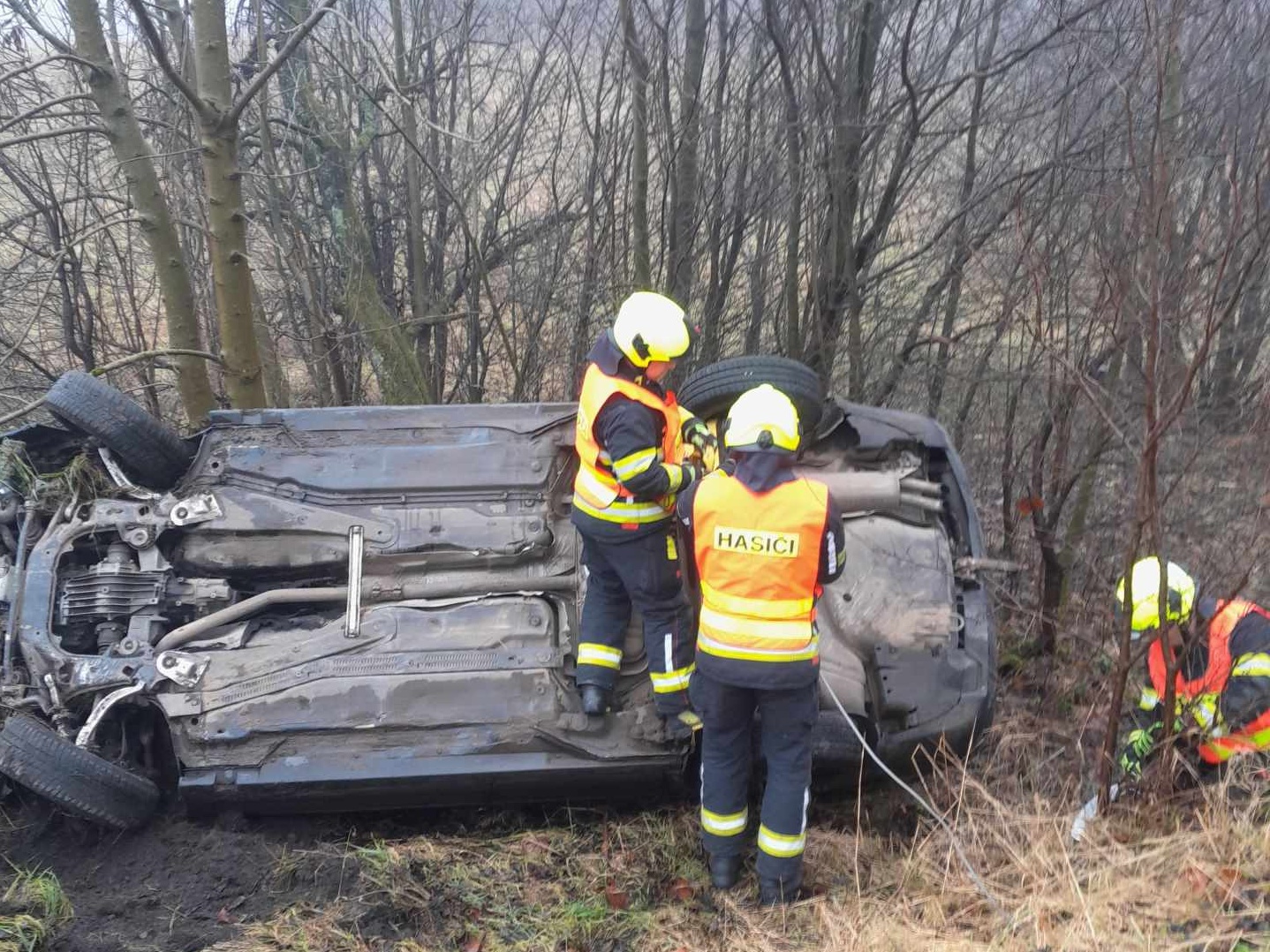Hasiči po příjezdu na místě provedli průzkum a zjistili, že ve vozidle, ale ani mimo něj nikdo není. Zasahující zajistili převrácení havarovaného vozu zpět na kola a prověřili, že z vozidla neunikají žádné provozní kapaliny. Místo předali kolegům z PČR a před půl jedenáctou se vrátili na základnu.