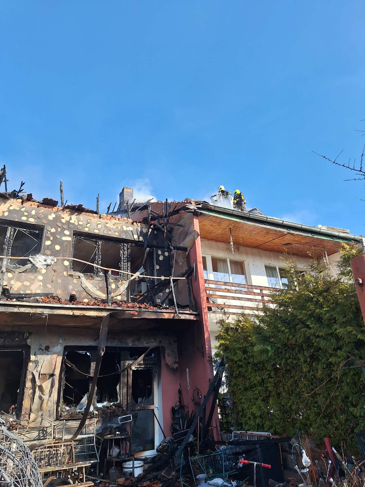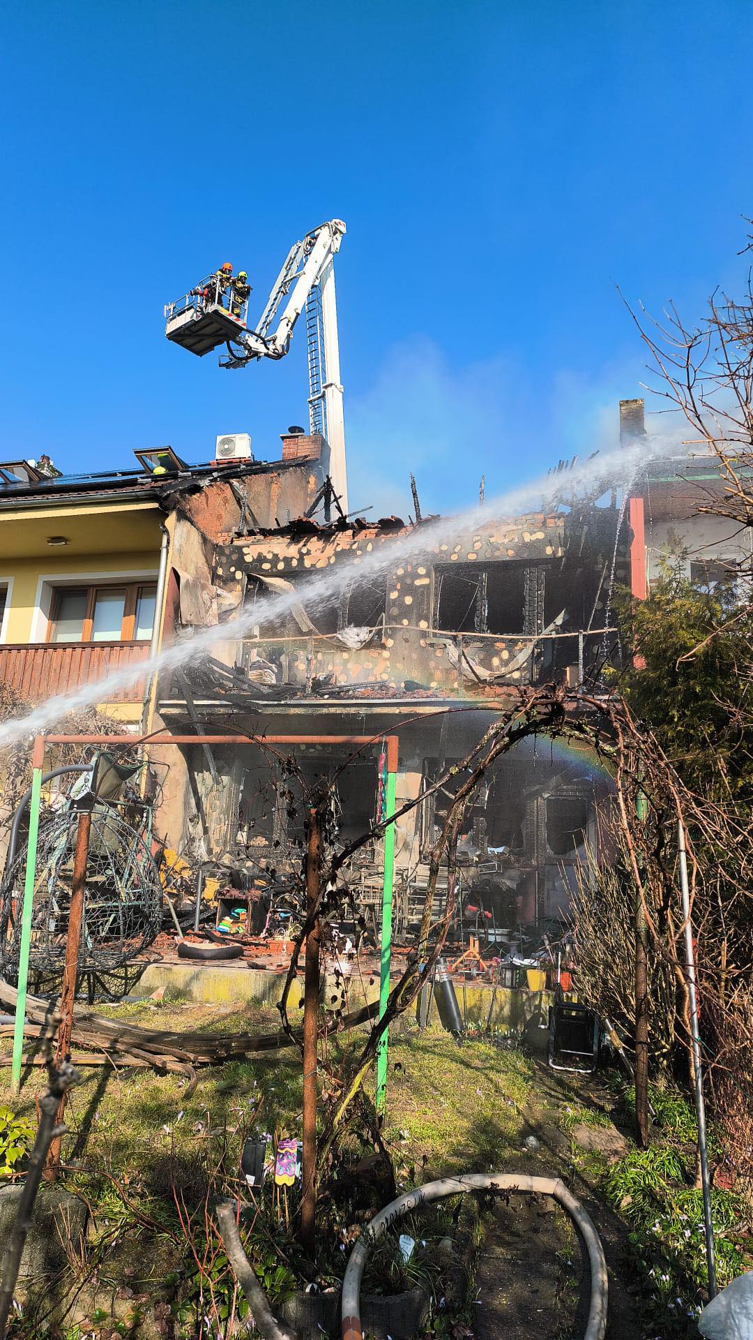 Ve 12:21 hodin byl požár lokalizován. Hasiči dále rozebírali střešní konstrukci domu, na kterou se požár přenesl, protože hrozí zřícením.