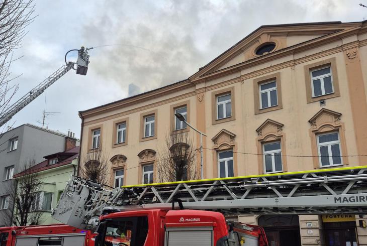 Ještě před příjezdem hasičů bylo z budovy příslušníky Policie České republiky evakuováno přibližně deset osob. Po příjezdu hasičů na místo velitel zásahu potvrdil požár bytového domu. Následným průzkumem hasiči zjistili, že hoří střešní konstrukce objektu. K likvidaci požáru bylo nasazeno několik proudů vody. Hasiči zasahovali jak z vnitřních prostor domu – z chodby objektu, tak i z vnější strany pomocí automobilového žebříku.