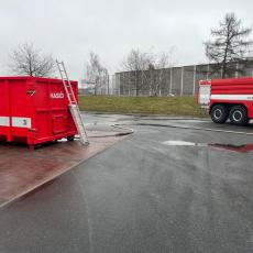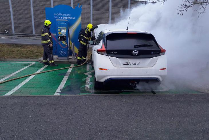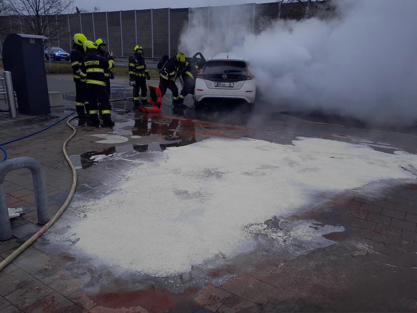 Vzhledem k tomu, že v baterii může docházet k dalšímu zahoření i po viditelném uhašení, bylo vozidlo částečně ponořeno do kontejneru s vodou, kde bylo dále monitorováno.