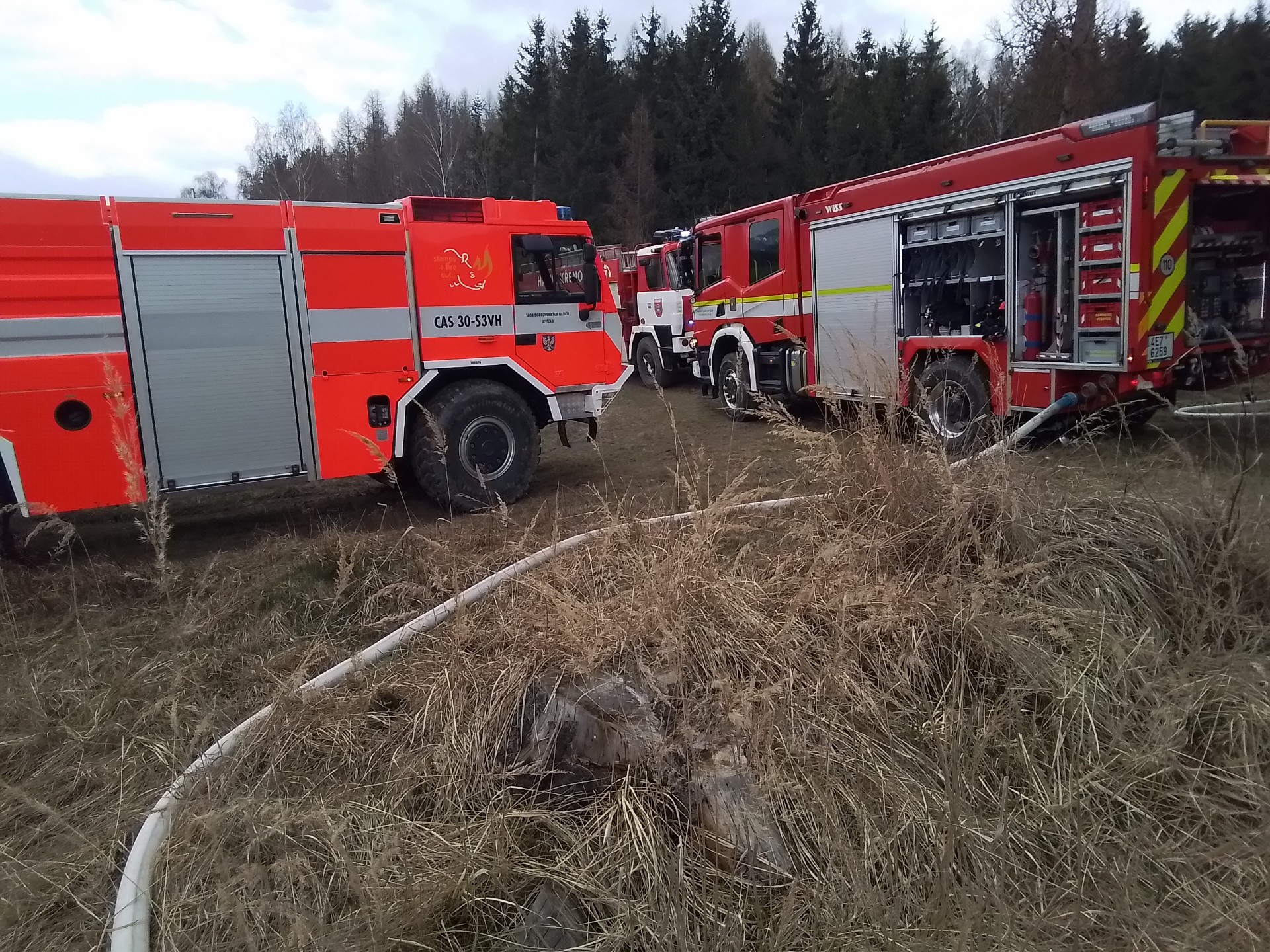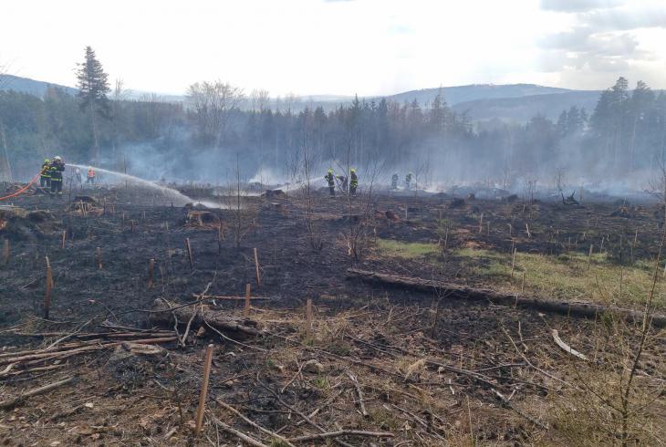 Hasiči provádějí dohašování ohnisek. Na místě je vyšetřovatel příčin požárů. Příčina a výše škody zatím nebyly stanoveny.