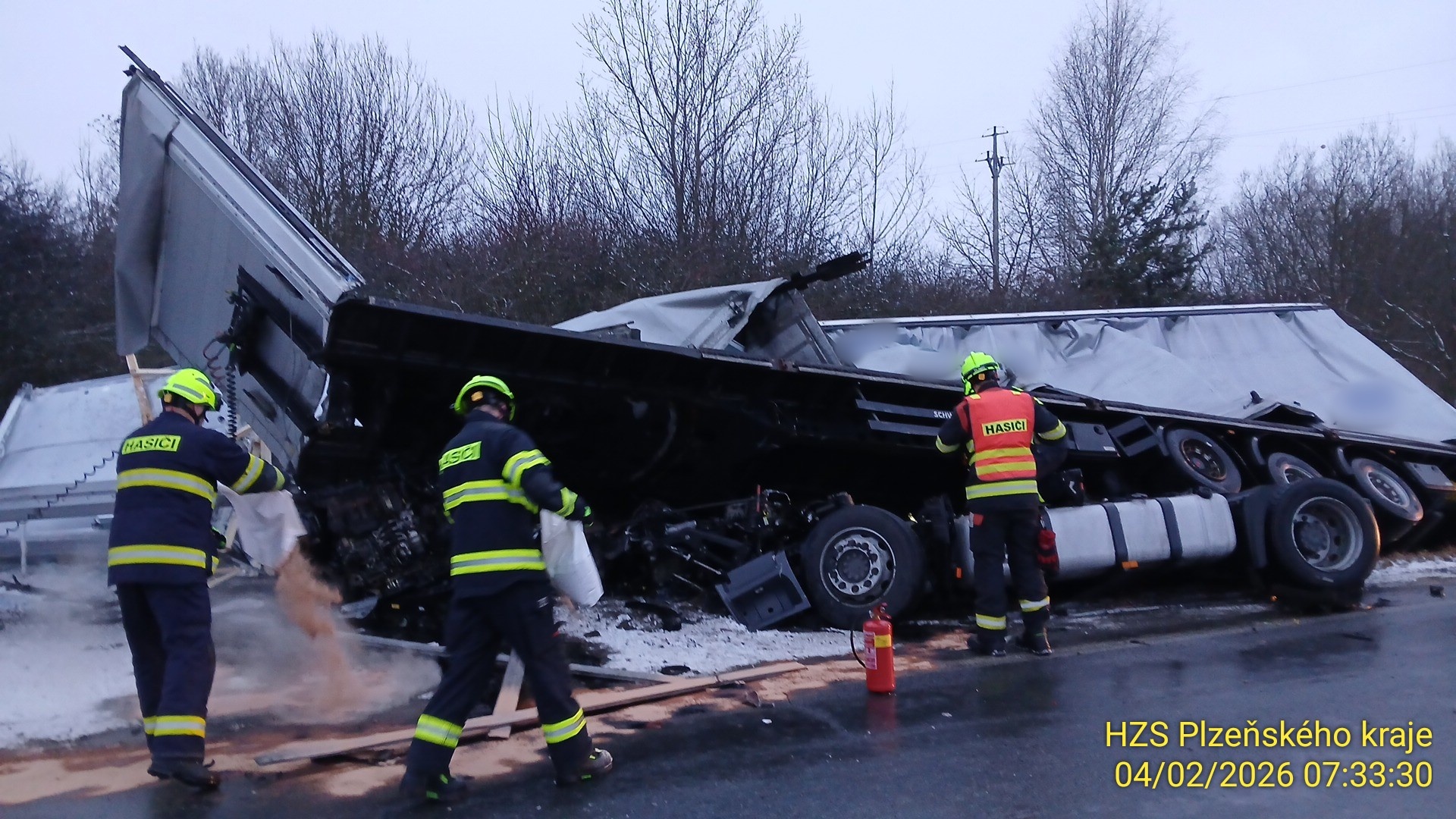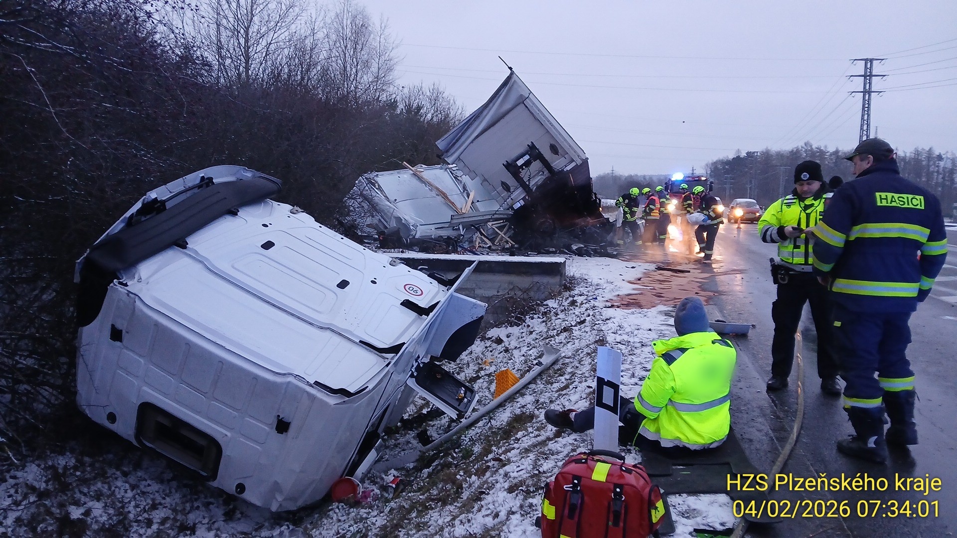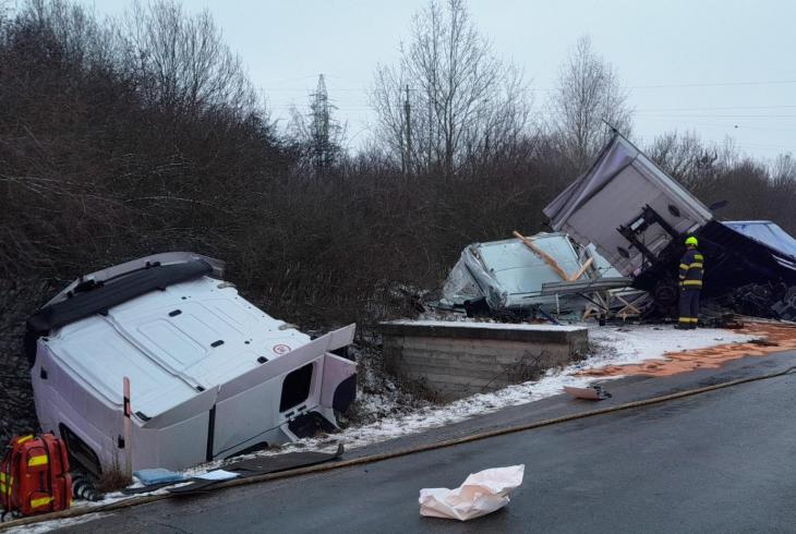 Provoz v místě nehody byl po dobu provádění záchranných a likvidačních prací řízen kyvadlově jedním jízdním pruhem.