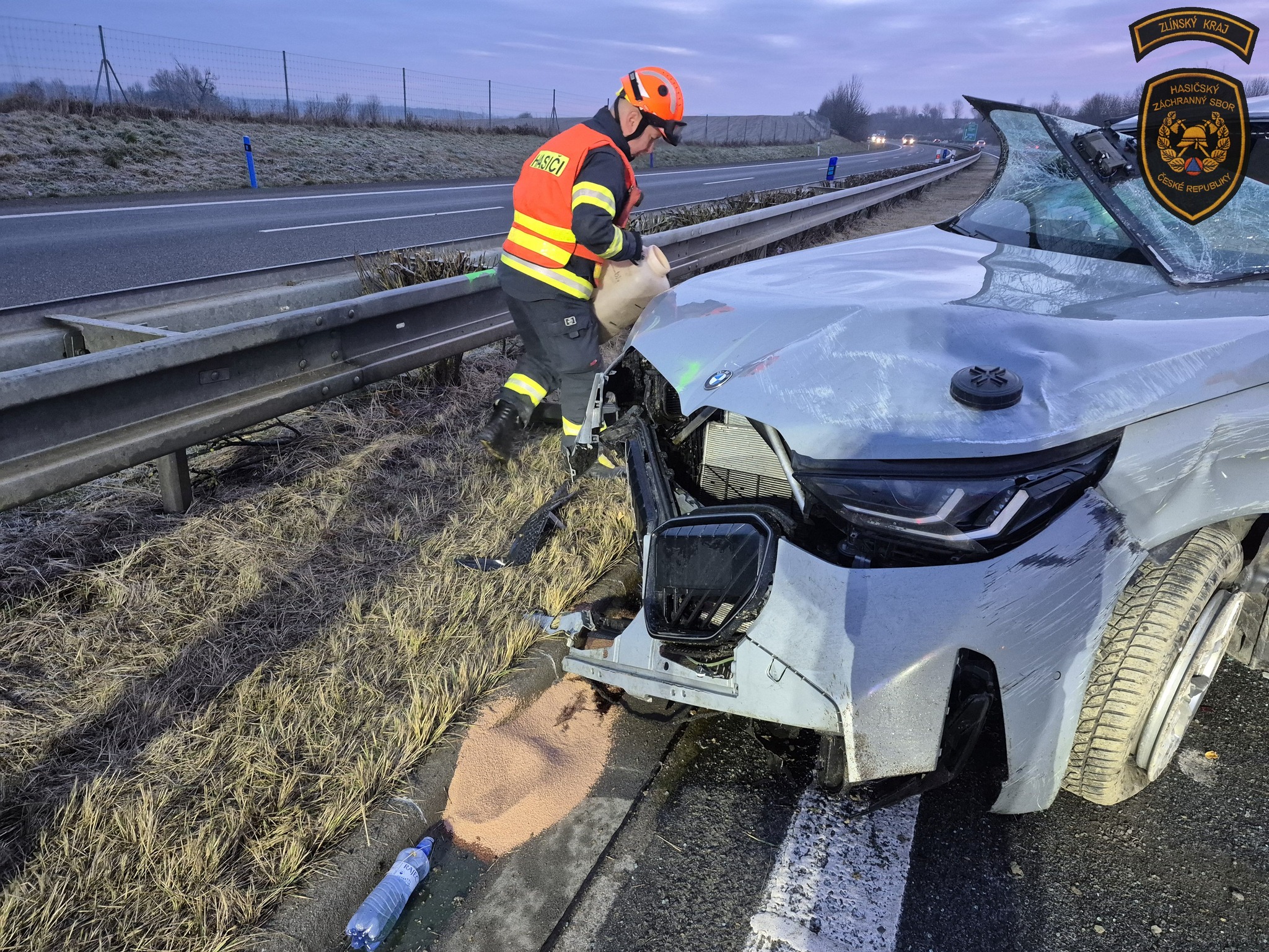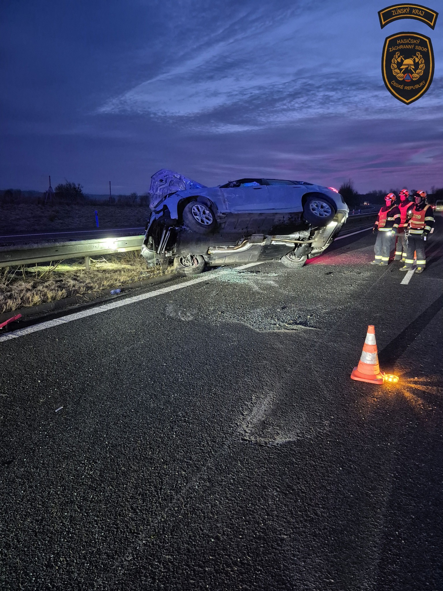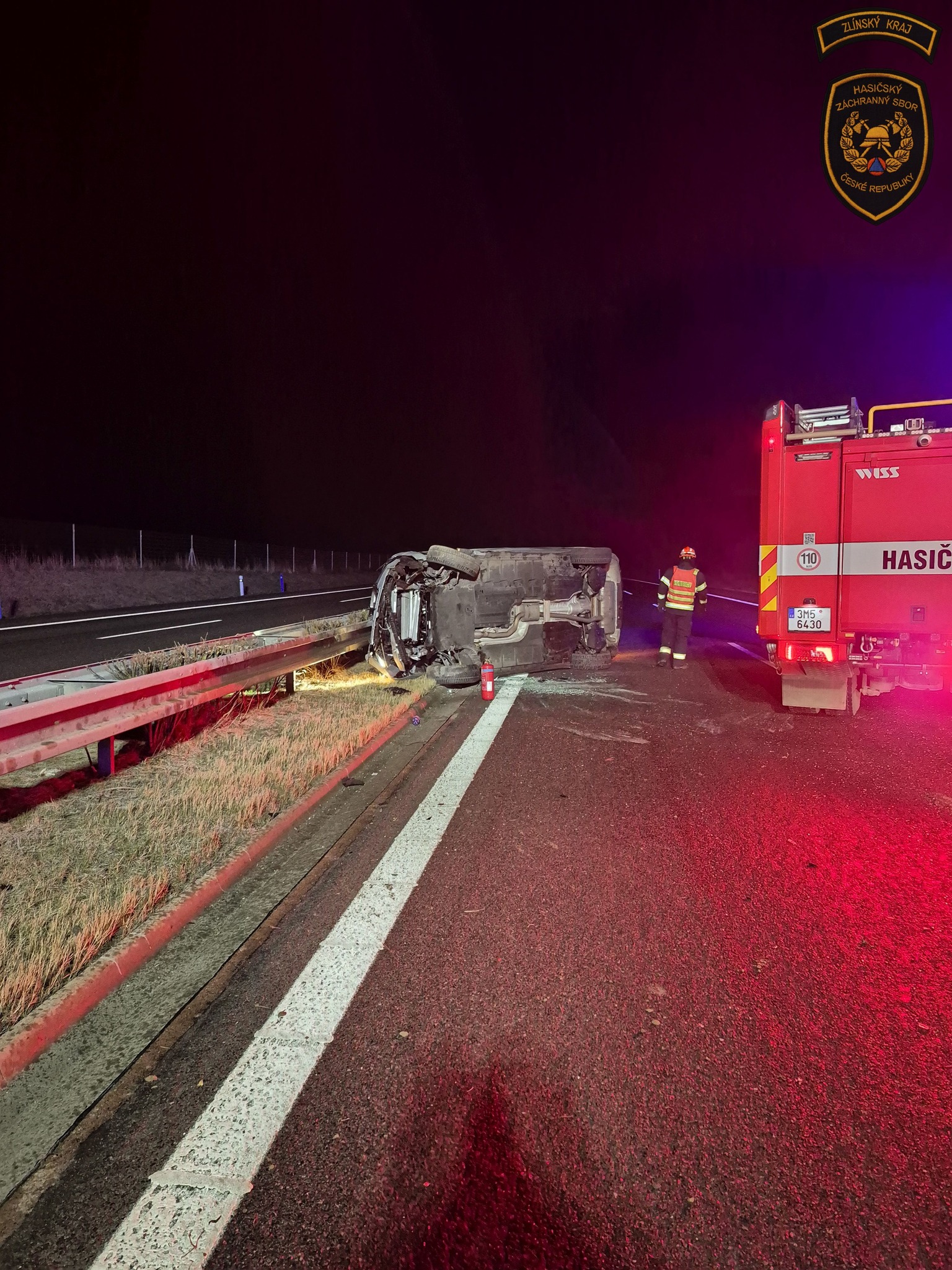 Velitel zásahu po příjezdu potvrdil, že se jednalo o nehodu vozidla, které skončilo převrácené na bok a blokovalo levý jízdní pruh. Řidič se v době příjezdu jednotek již nacházel mimo vozidlo a byl předán do péče zdravotnické záchranné služby.