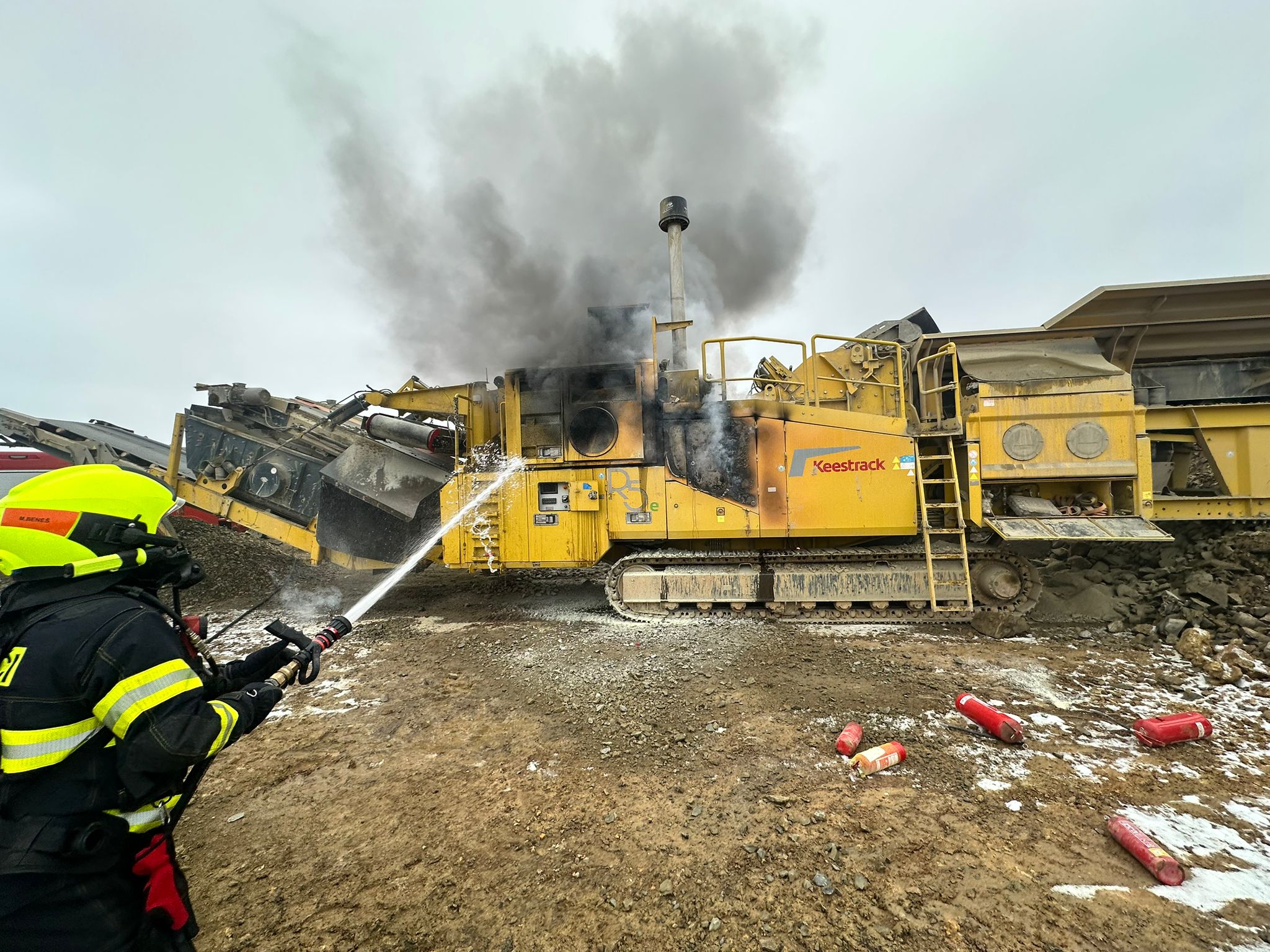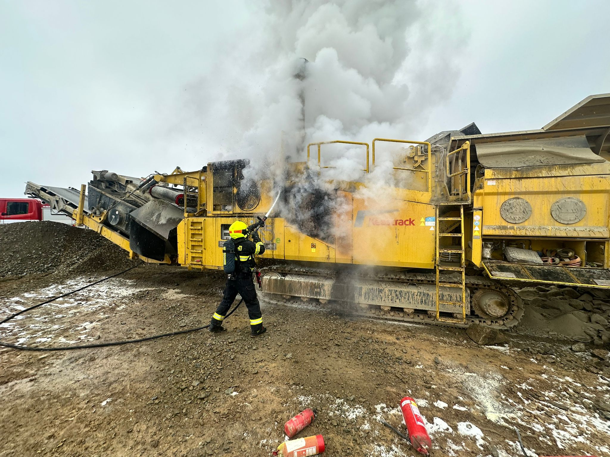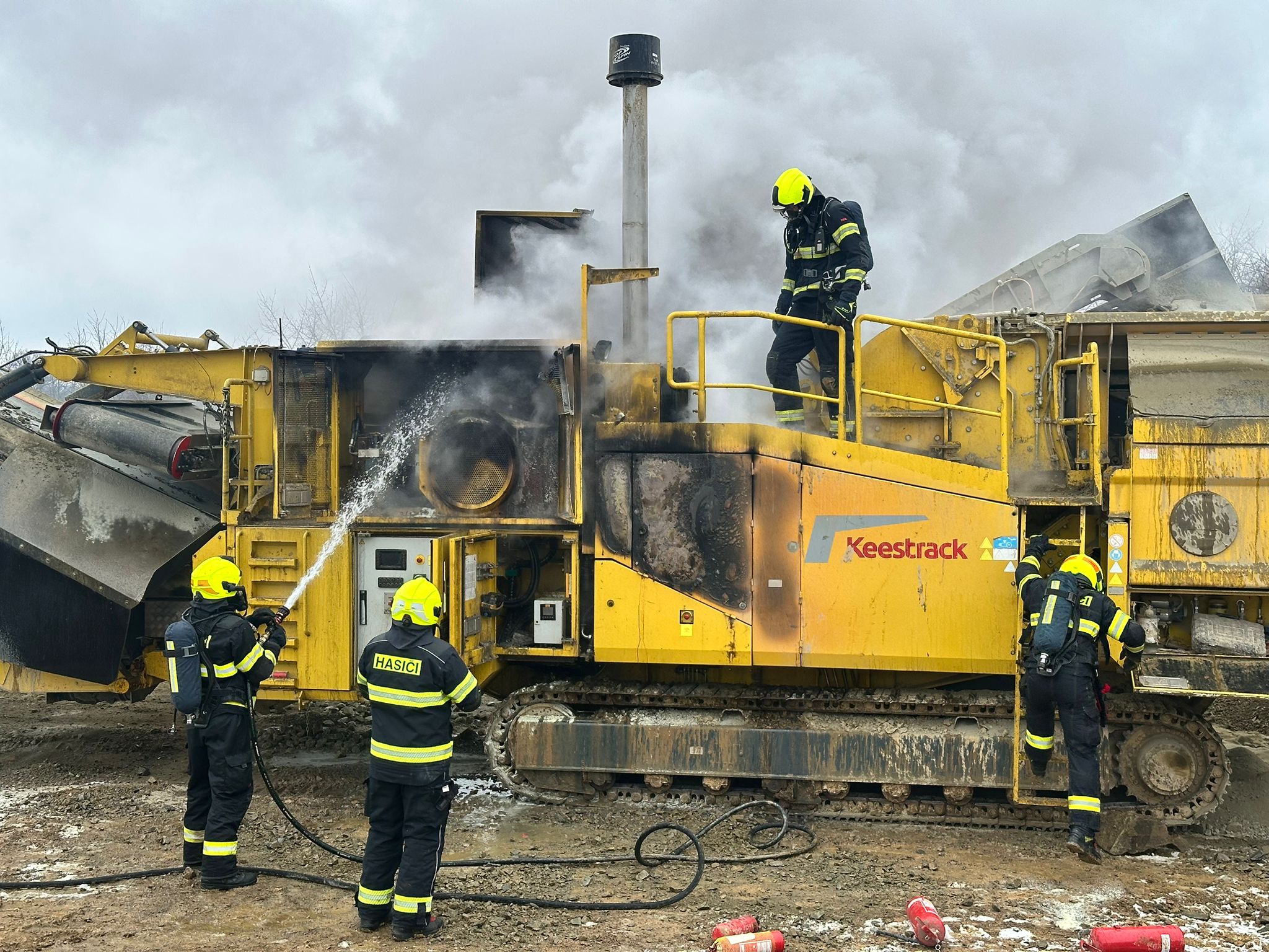 Jednotky požár lokalizovali vysokotlakým proudem a následně pěnou ze zařízení PRO/pak ve 13.08 hodin. Pak ještě stroj dohašovali a ochlazovali vodním proudem. Vzniklou škodu na stroji vyčíslil vyšetřovatel na dva miliony korun, rychlým zásahem hasiči uchránili hodnoty za deset milionů.