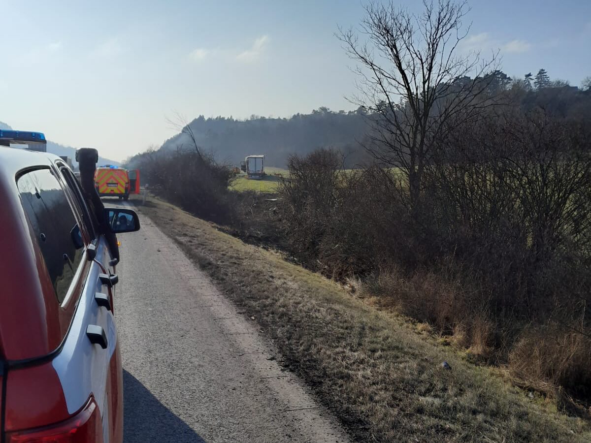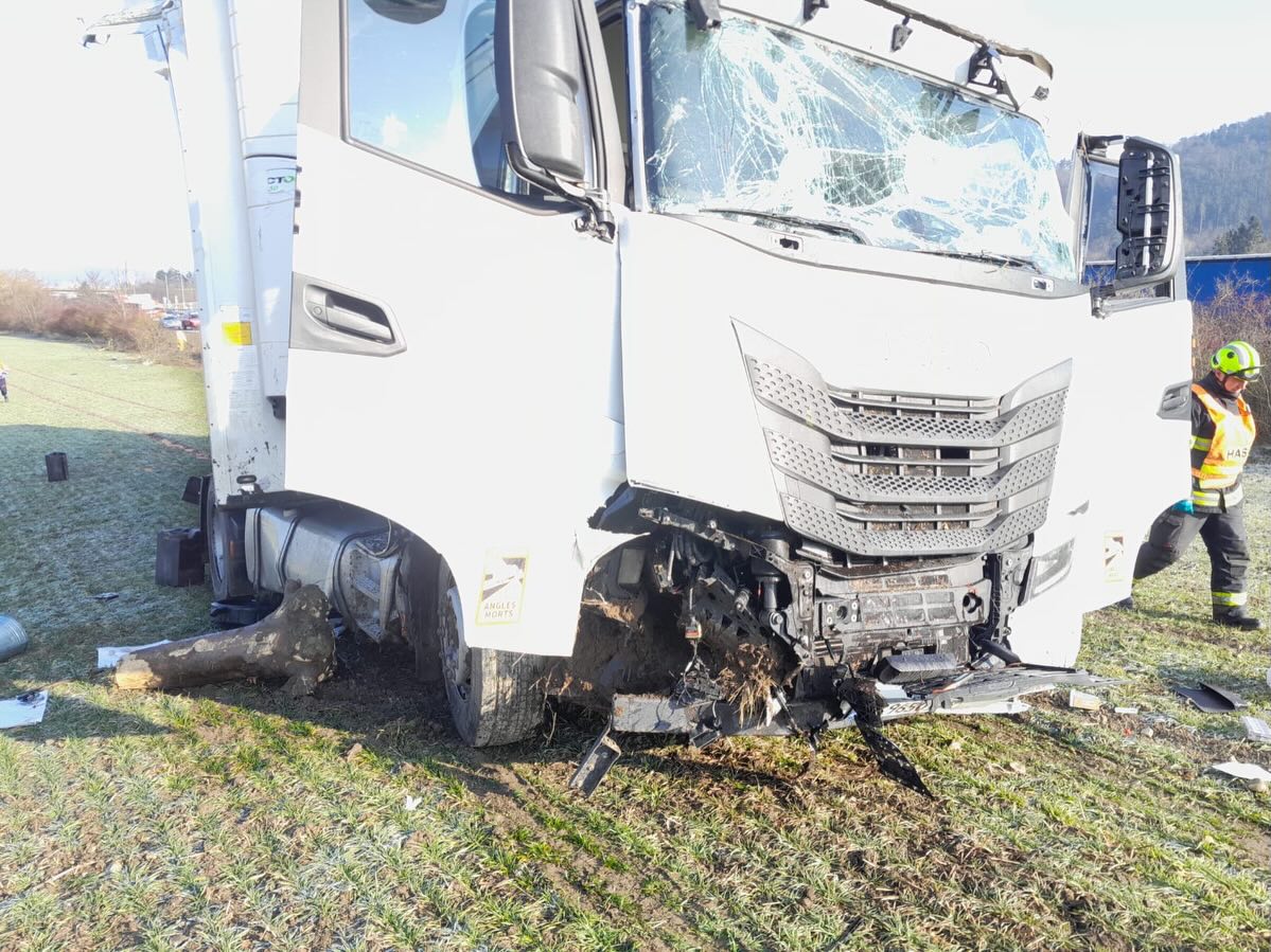 Dopravní nehoda nákladního automobilu v úterý ve 12:38 na D5 u Králova Dvora, který sjel z dálnice si vyžádala zásah dvou jednotek požární ochrany.