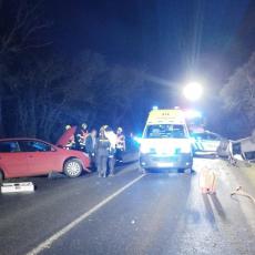 Po čelní srážce leželo jedno vozidlo na střeše.