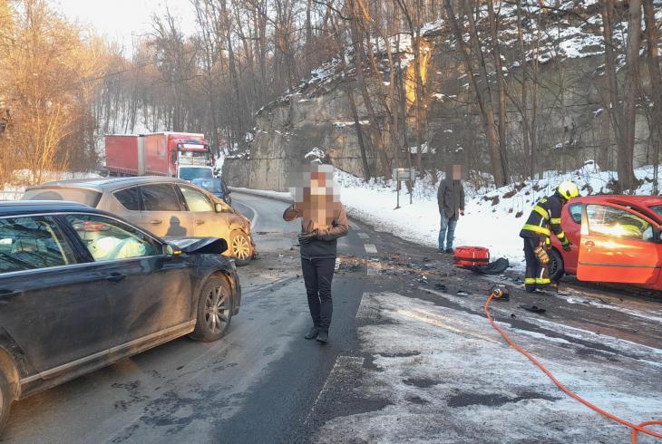 Turnovské profesionální a dobrovolné hasiče během čtvrtečního dopoledne zaměstnala dopravní nehoda tří osobních aut na komunikaci I/10 v Turnově, části obce Kobylka.