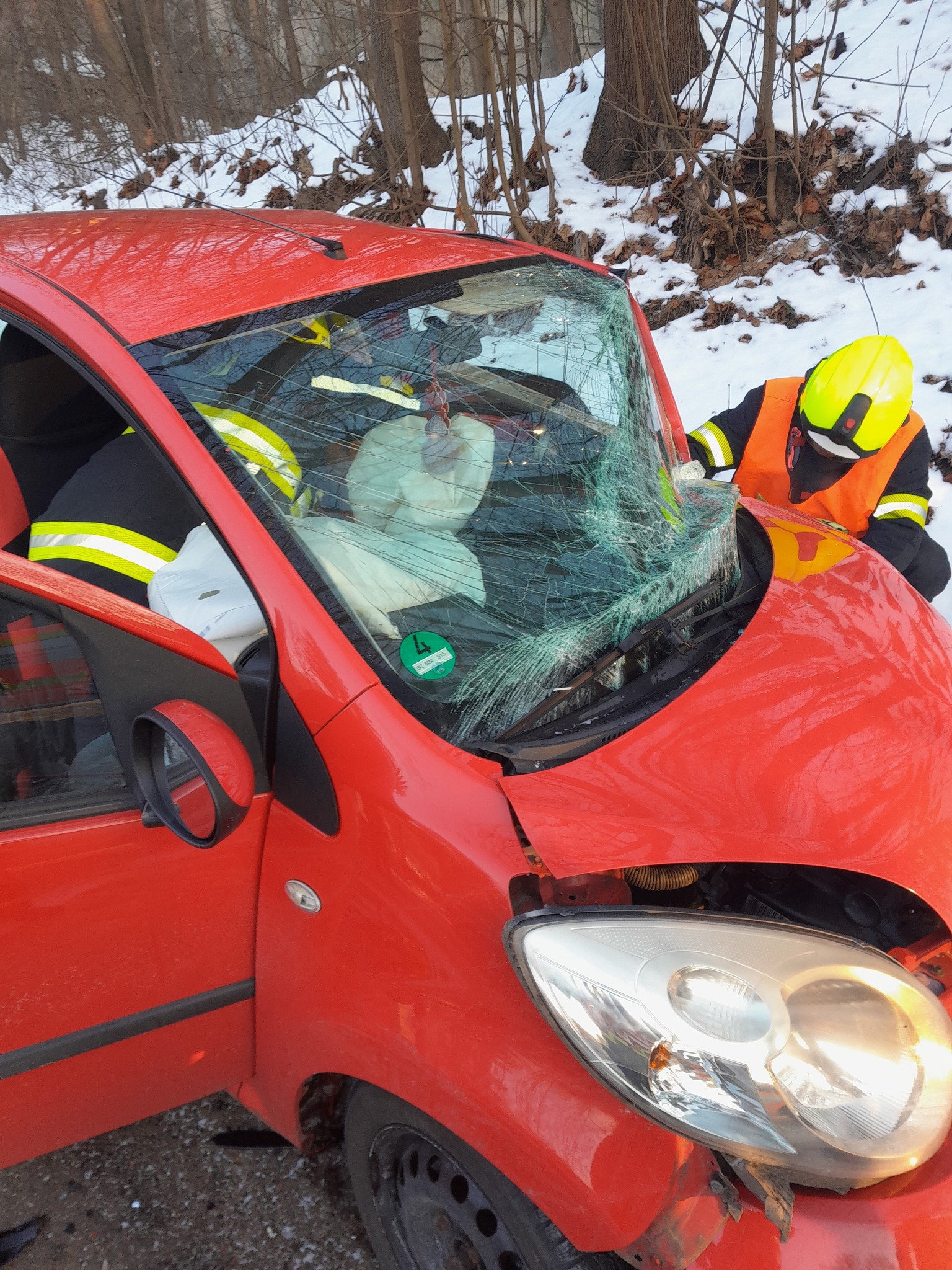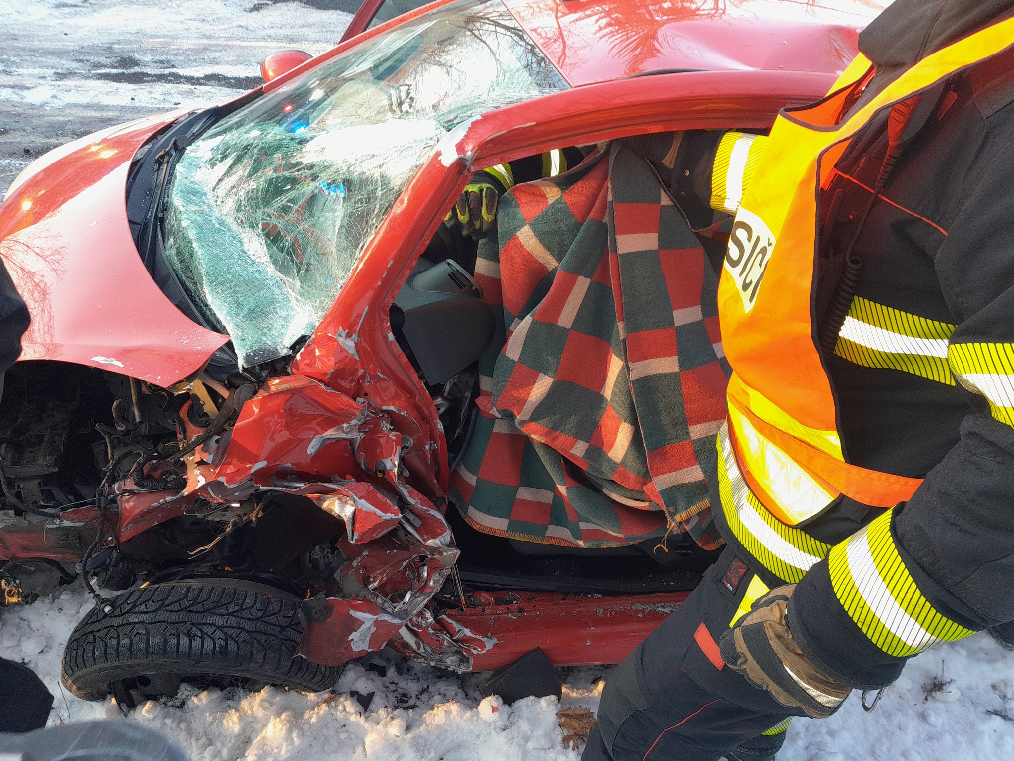 V jednom z havarovaných vozidel se nacházela zaklíněná řidička, kterou hasiči bezpečně, šetrně, ale také rychle vyprostili a poté ji předali do péče ZZS LK. Při vyprošťování použili hydraulické vyprošťovací zařízení, a to rozpínák, nůžky a také rozpěrný válec.