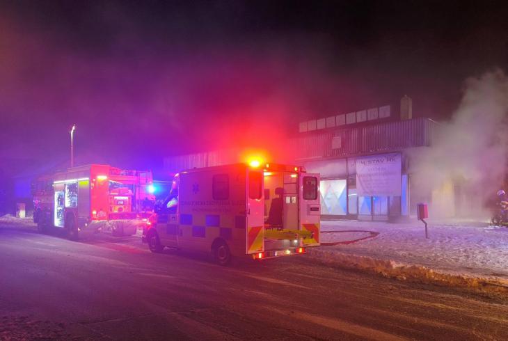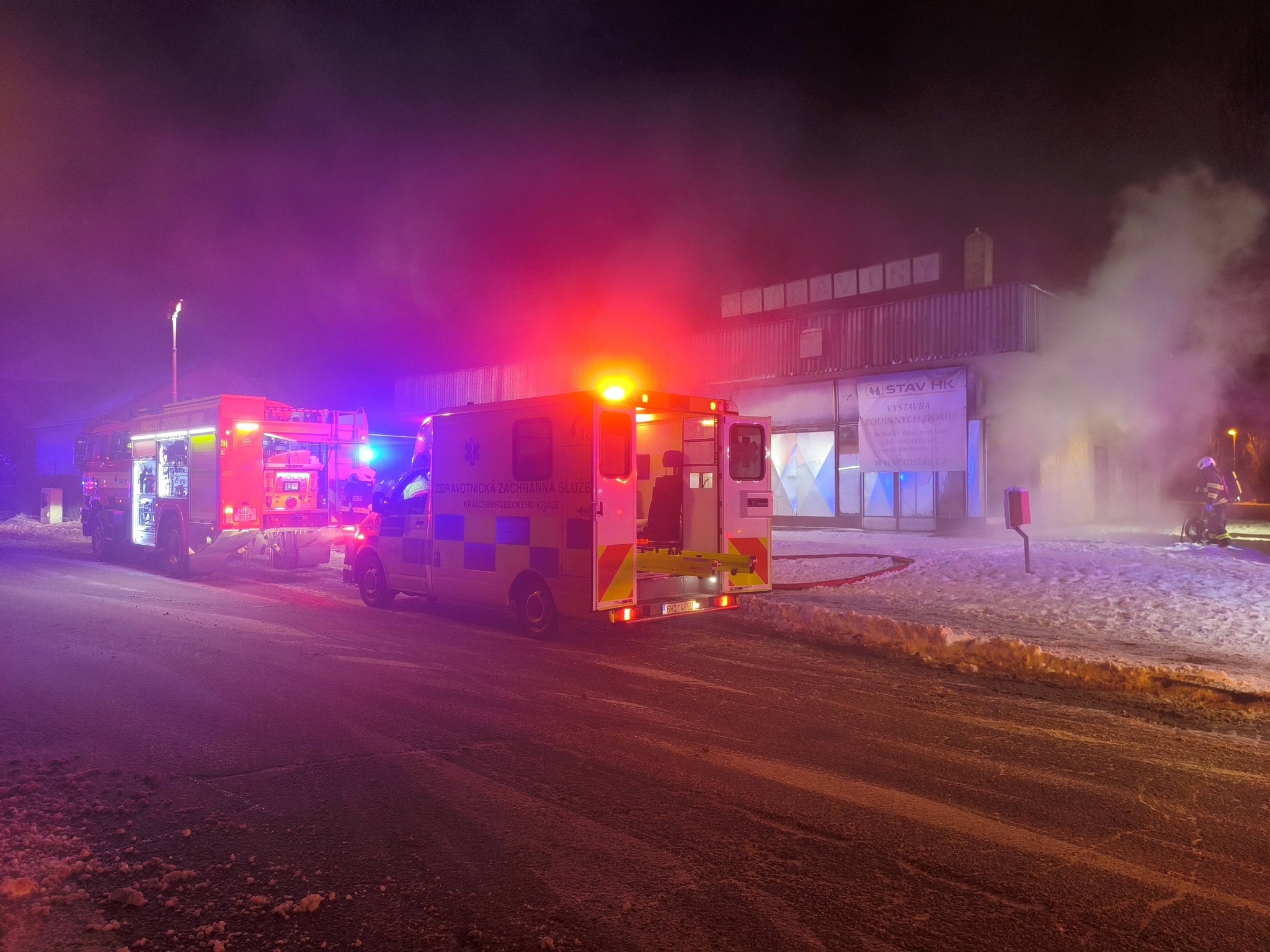 V pondělí před půlnocí vyjely jednotky z 1. stupně PP k požáru v bývalé prodejně potravin v Hradci Králové v Kydlinovské ulici. Průzkumná skupina hasičů v hustém kouři po krátké chvíli nalezla osobu, která se v objektu nacházela. Byla vynesena na bezpečné místo, kde se o ní postaraly posádky ZZS KHK.