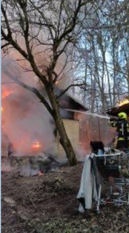 V Chebu v ulici Klášterní zasahovali hasiči u požáru chaty, která je i zasažena požárem v plném rozsahu.