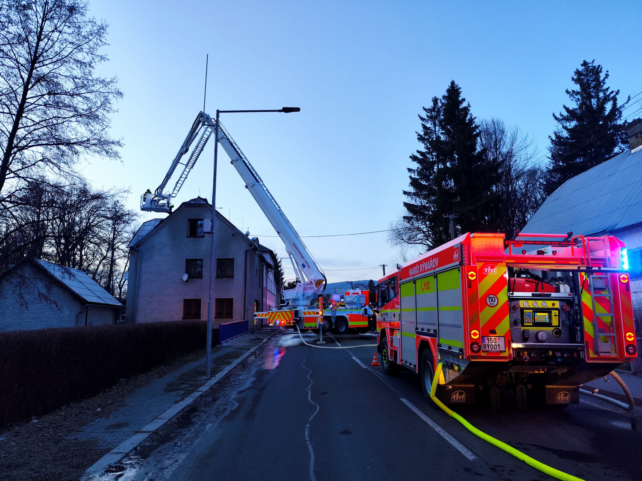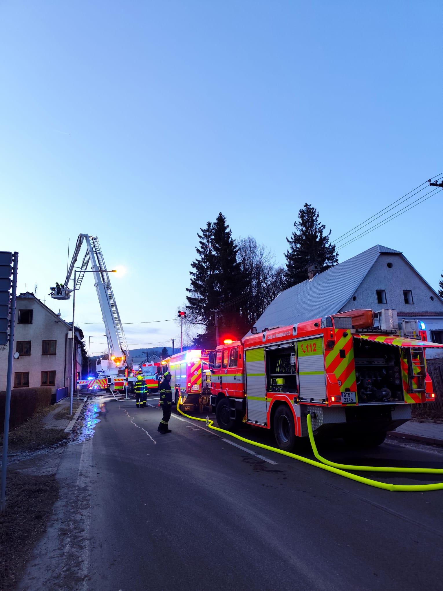 Během zásahu byla z bezpečnostních důvodů dočasně uzavřena komunikace I. třídy procházející obcí.