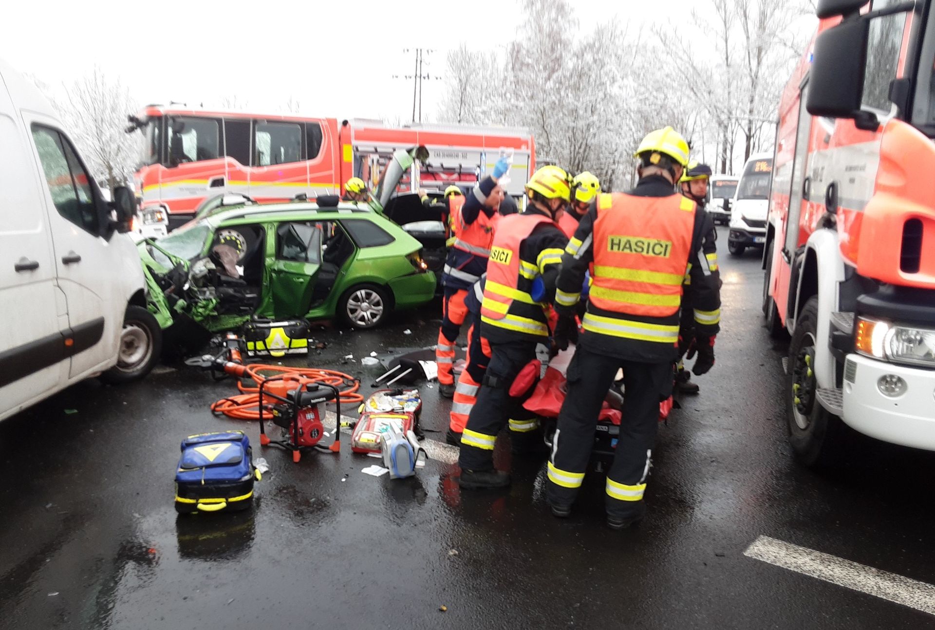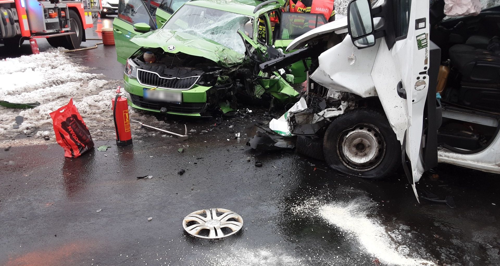 Na žádost lékaře poblíž místa nehody připravili hasiči prostor pro přistání záchranářského vrtulníku. Celkem se při nehodě zranily tři osoby. Co se na křižovatce stalo zjišťuje policie. U nehody zasahovaly tři jednotky hasičů.