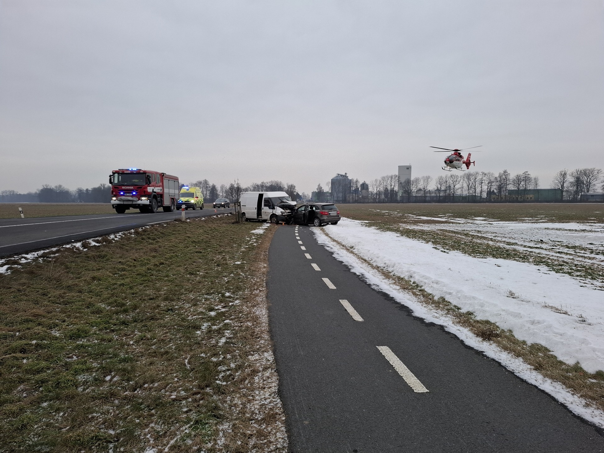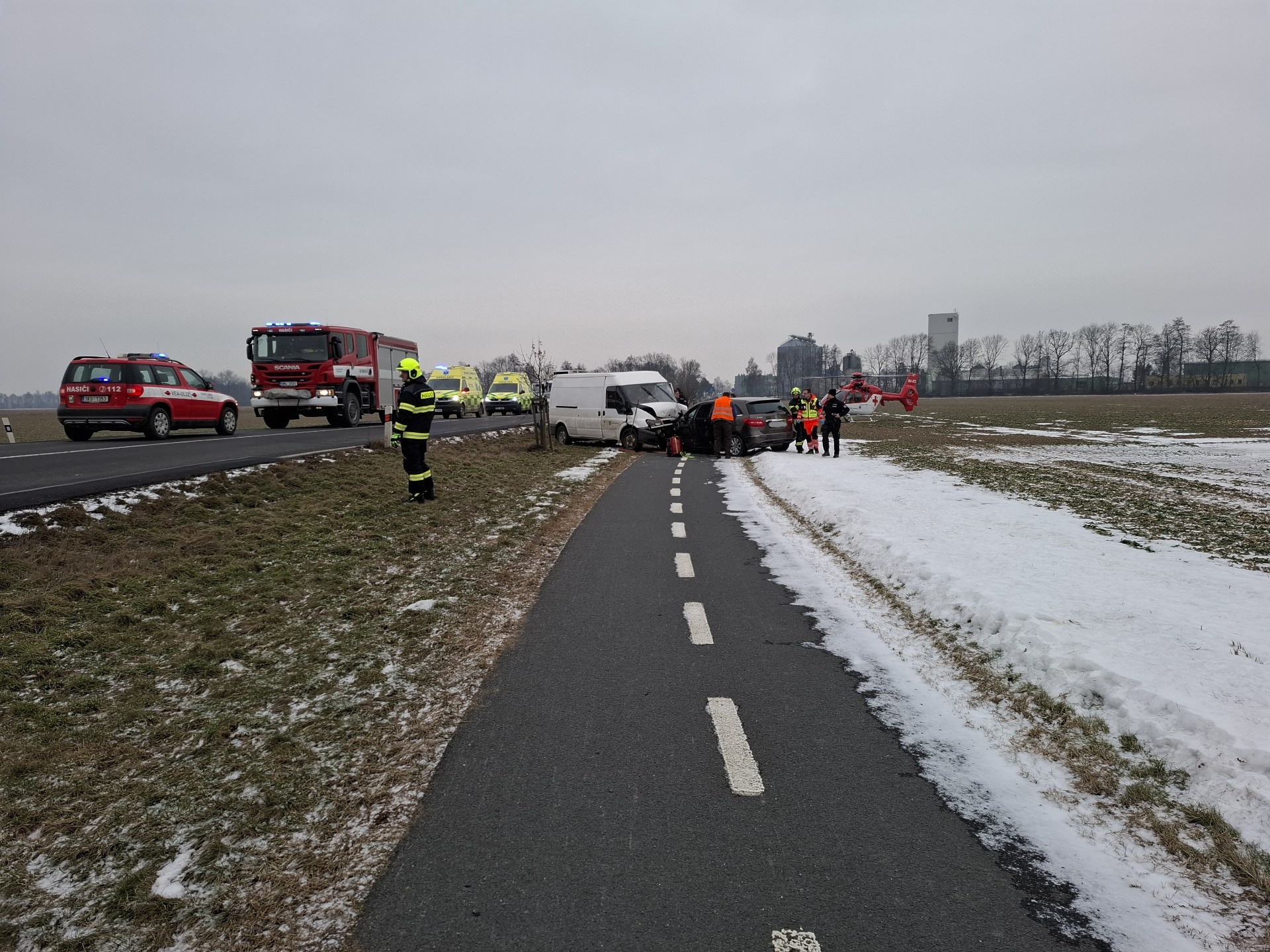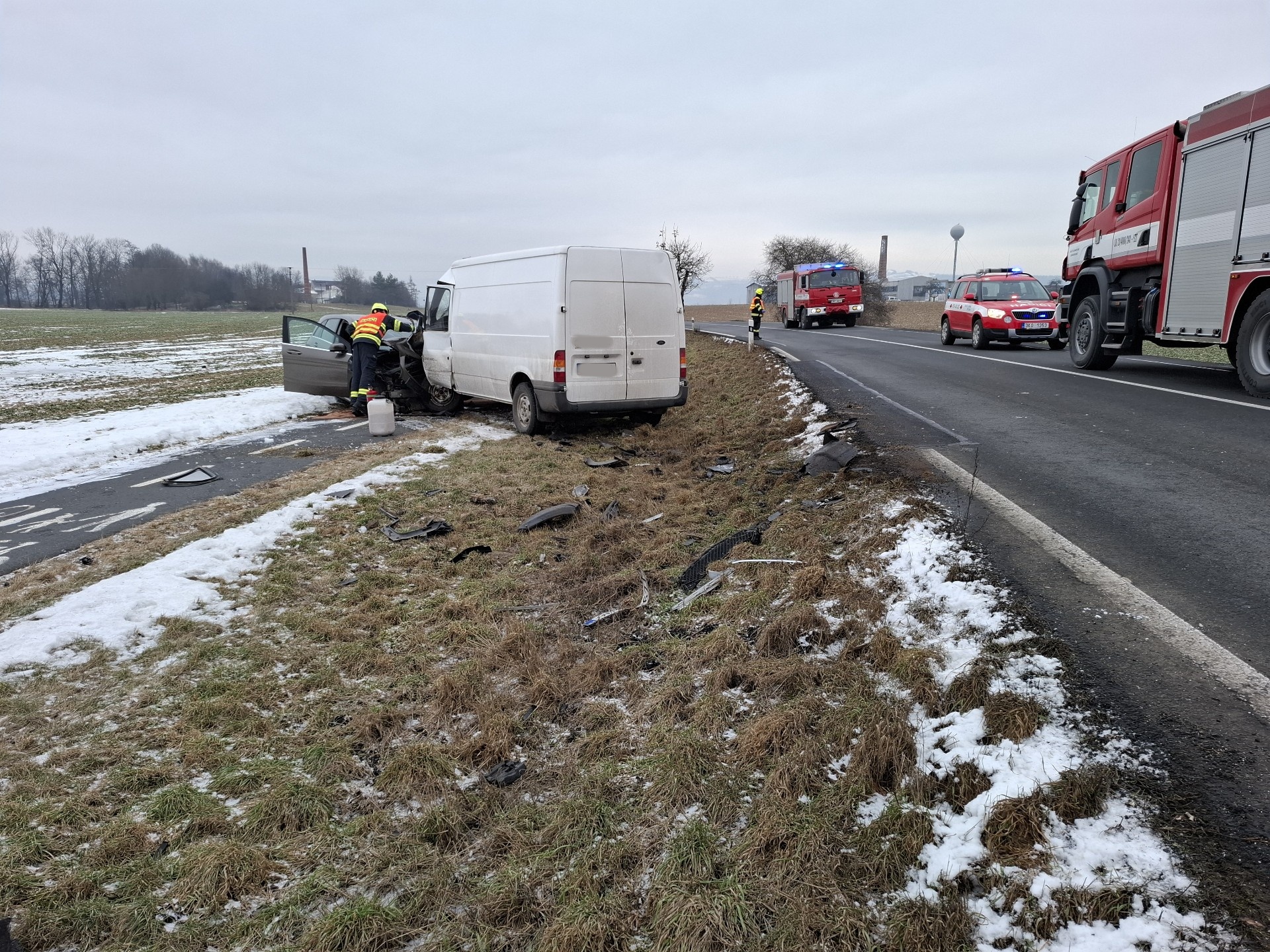 Hasiči zajistili místo nehody proti vzniku požáru a řešili také únik provozních kapalin.
