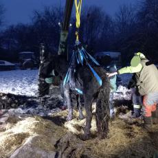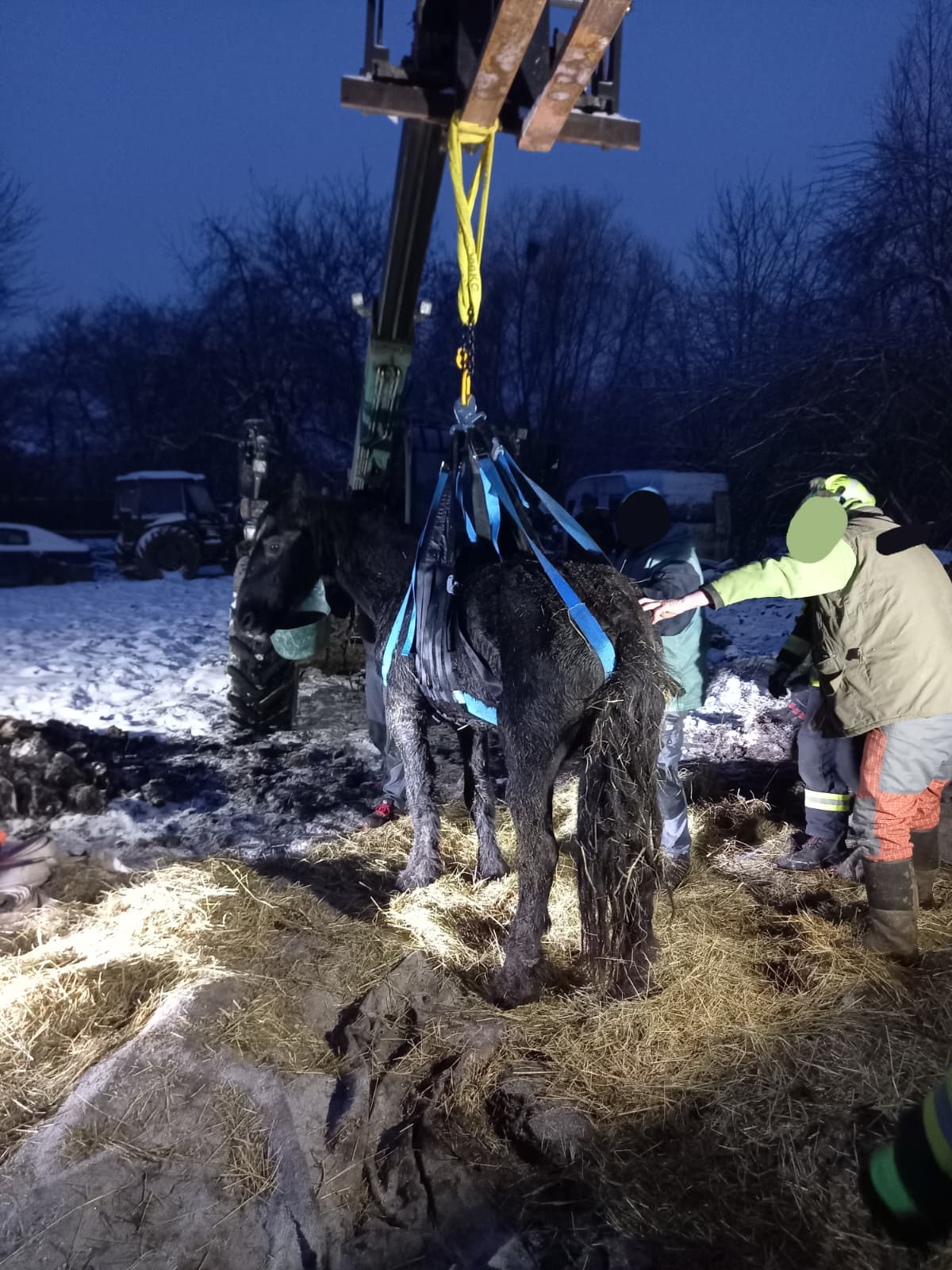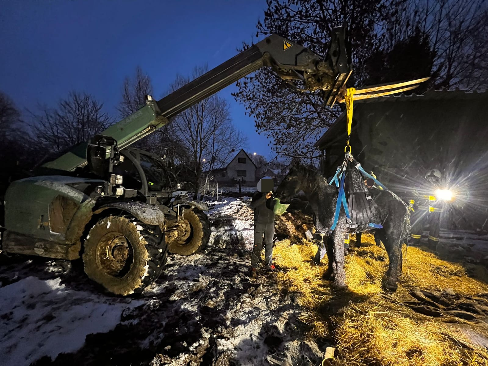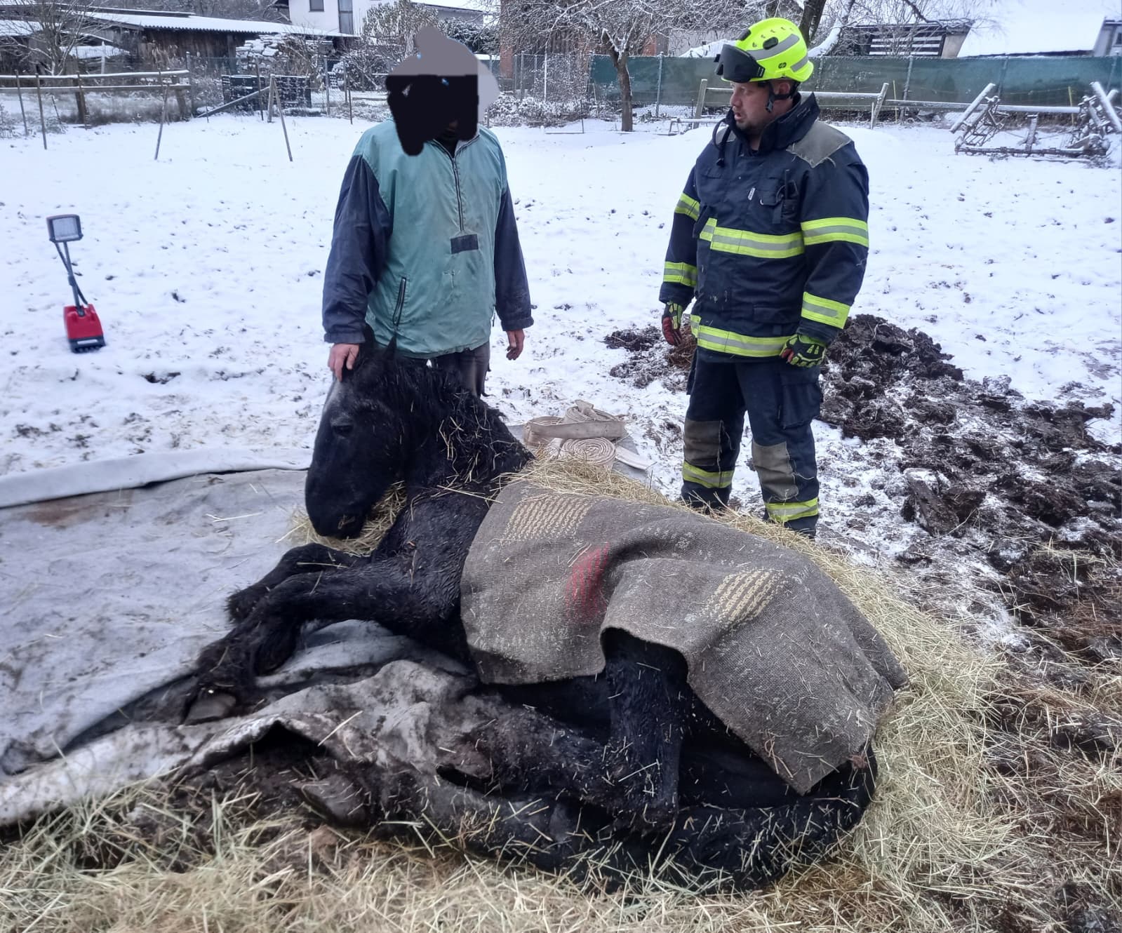 Na místo vyrazila jednotka ze stanice Hořice a ta po průzkumu povolala trutnovské kolegy, kteří vlastní tento technický prostředek díky daru Mvdr Dávid Krajňák. Pomocí něho se podařilo koně šetrně postavit na nohy a po chvilce odpočinku byl schopen vlastní chůze, jištěn touto sítí. Nebylo třeba ho nijak více zvedat, mohl tak bezpečně do stáje po svých, pouze zajištěný.