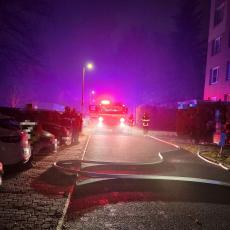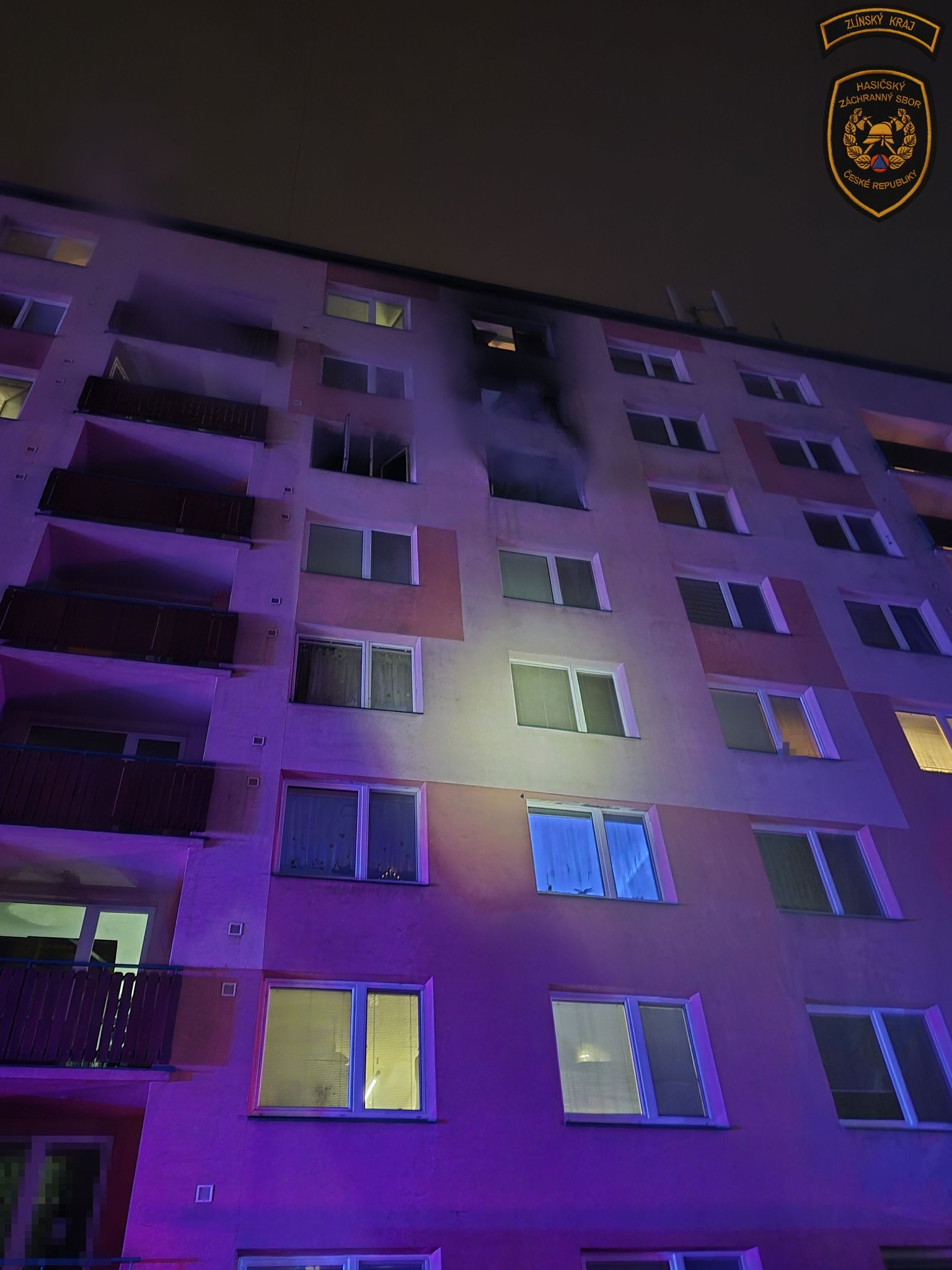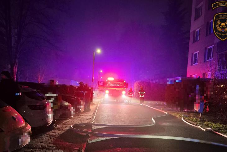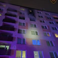 Požár zasáhl byt v 5. patře bytového domu. Hasiči ihned zahájili hasební práce a evakuaci osob.