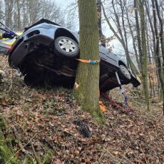 Ve čtvrtek ráno před devátou hodinou se v Bohuslavicích u Zlína odehrála dramatická dopravní nehoda, při níž osobní vozidlo sjelo z vozovky, během čehož se převrátilo přes střechu, a zastavilo až mezi vzrostlými stromy. Vzhledem ke strmému terénu hrozilo, že se automobil zřítí dále z kopce dolů.