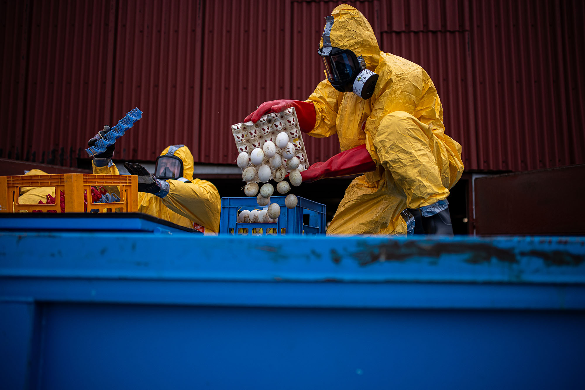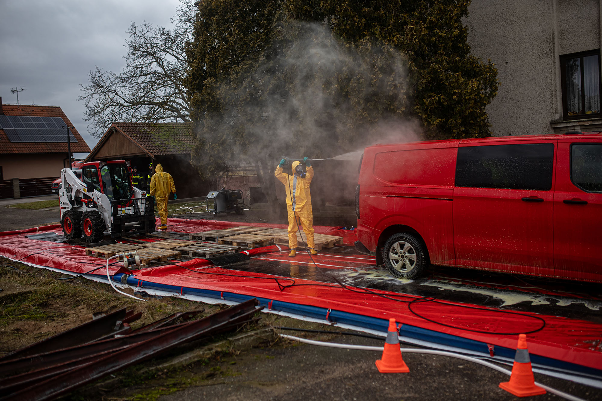 Kromě samotného vynášení drůbeže zajišťovaly jednotky také dekontaminaci zasahujících osob a techniky, na závěr provedly desinfekci hal. Na místě zasahovalo od rána do odpoledních hodin na 50 profesionálních hasičů.