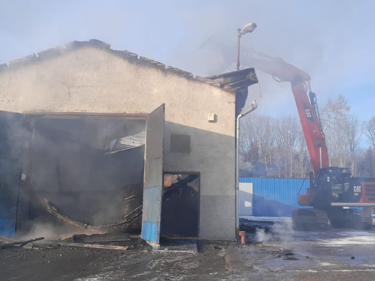 Střecha budovy se propadla a tak nebylo možné vést zásah uvnitř budovy. Na místě hasiči zřídili dvě čerpací stanoviště - na nedalekém rybníce a z hydrantu. Na místo povolali správu a údržbu silnic, protože odtékající hasební voda v tomto počasí namrzá a pohyb na požářišti je pro zasahující nebezpečný. Současně hasiči povolali statika, který prohlédne stav budovy a ze Záchranného útvaru HZS ČR velitel zásahu vyžádal pásové rypadlo, které pomůže s rozebíráním objektu a dohašováním skrytých ohnisek.