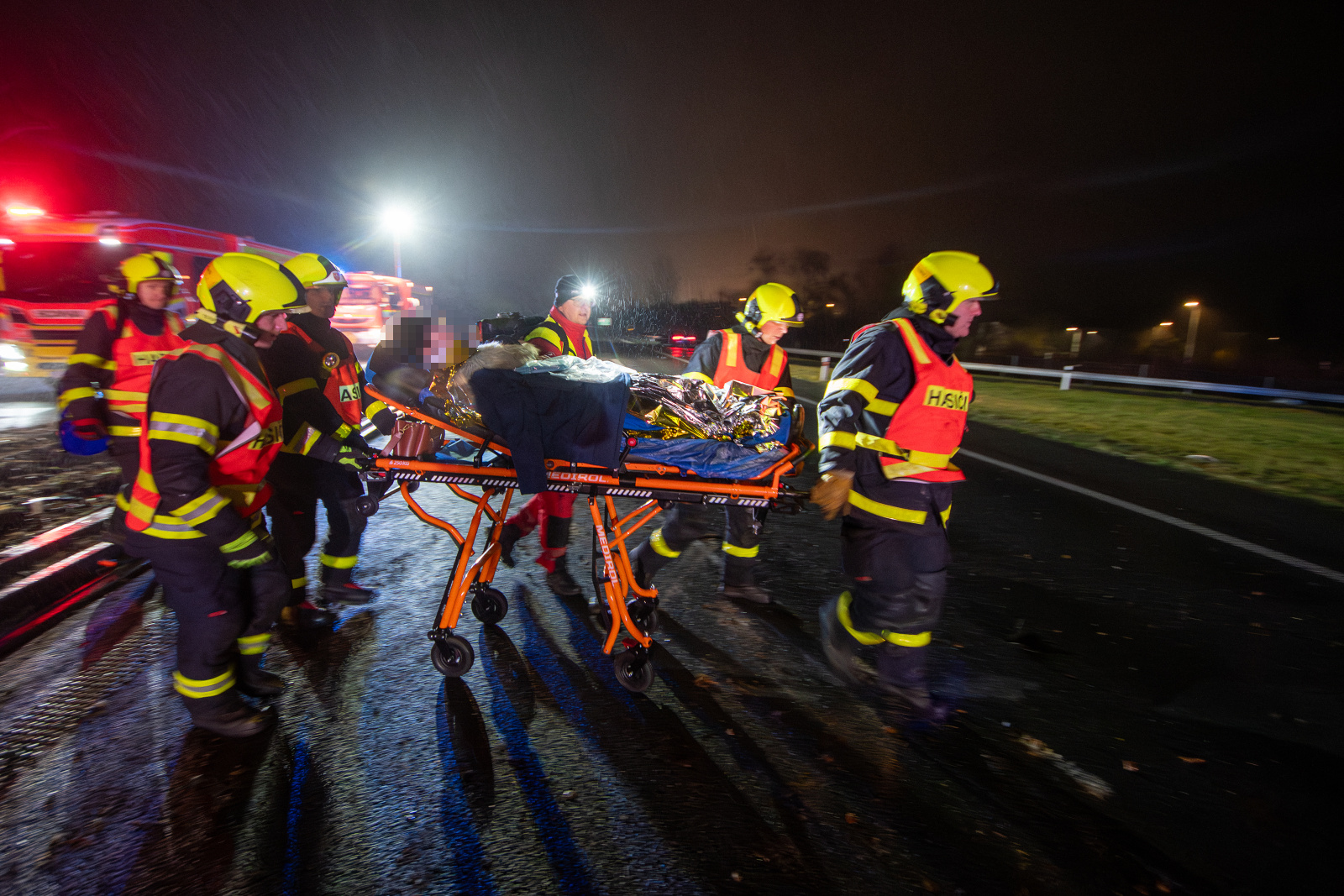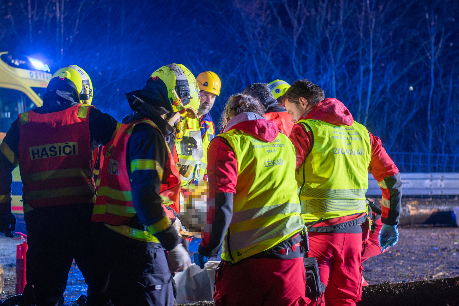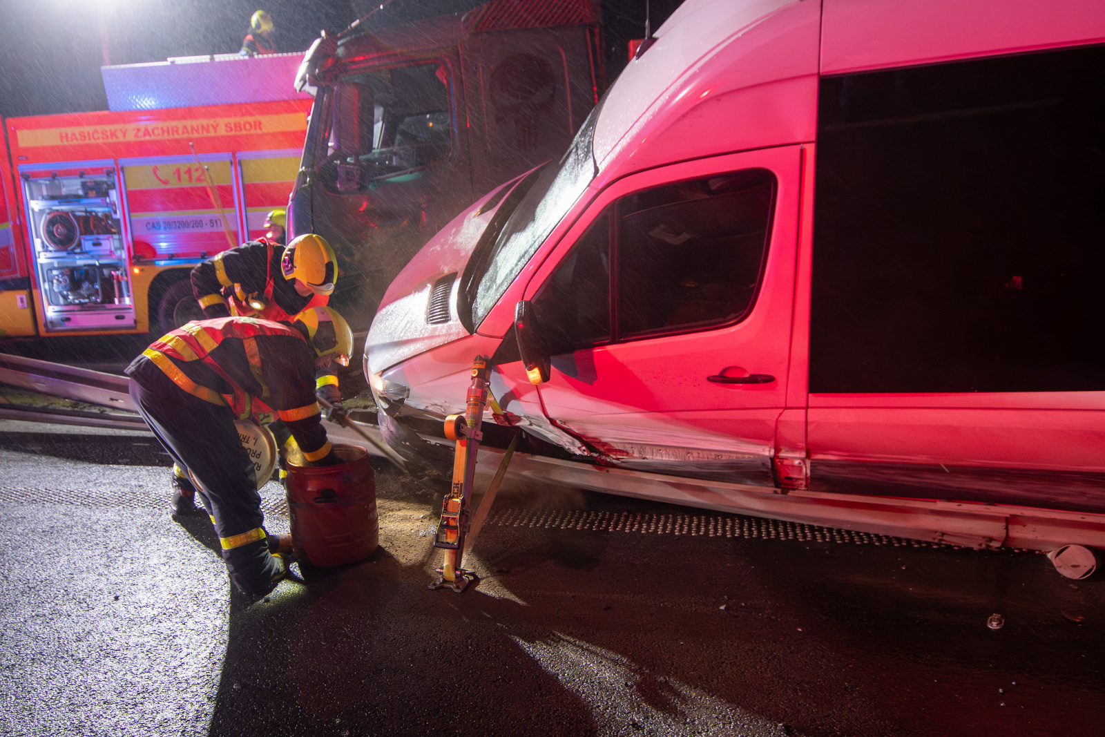Do uvolněné kulatiny následně narazila tři osobní auta, jedno z nich se převrátilo na střechu a jeho řidič v něm zůstal zaklíněn. K jeho vyproštění použili hasiči hydraulické vyprošťovací zařízení. Bezprostředně poté zahájili nepřímou srdeční masáž a po příjezdu zdravotnické záchranné služby předali muže do její péče.