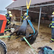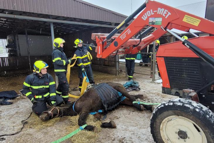 Na místo vyrazila profesionální jednotka z Českého Těšína a také jednotka z Ostravy-Přívozu, která se specializuje právě na zásahy tohoto typu. Díky speciální síti určené pro zvedání koní a traktoru s manipulačními vidlemi se hasičům podařilo Emilii bezpečně postavit na nohy.