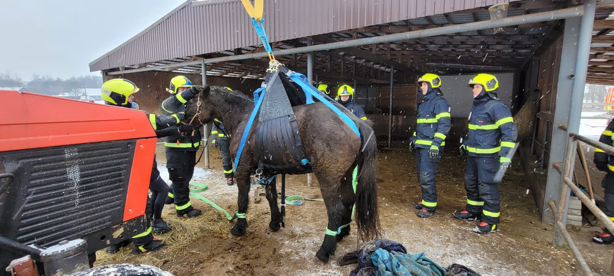Ve čvrtek ráno byla v Ropici nalezena kobylka Emilie, která se bohužel nemohla postavit na vlastní nohy. Její majitelé se ji snažili pomoci, situace si ale vyžádala odborný zásah, a proto přivolali hasiče.