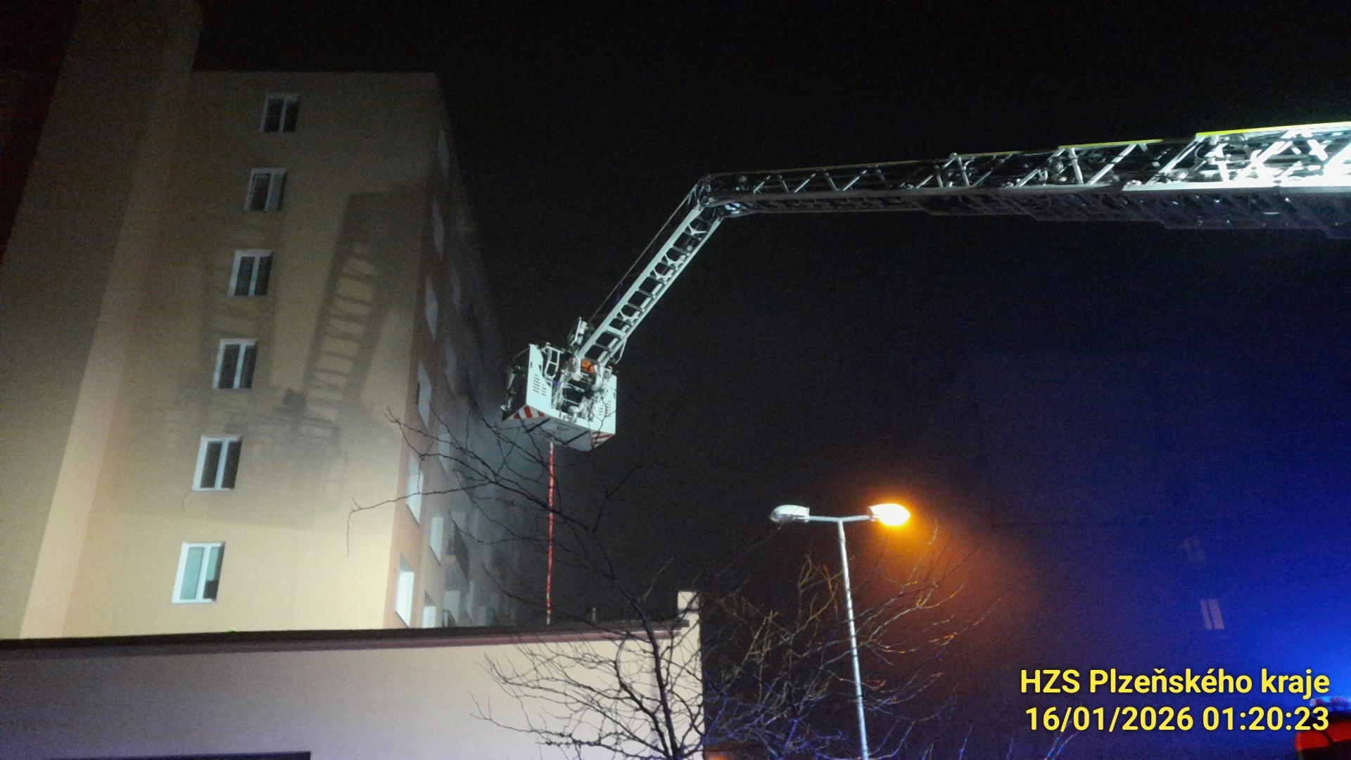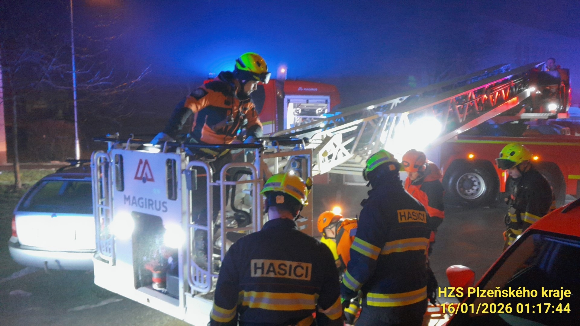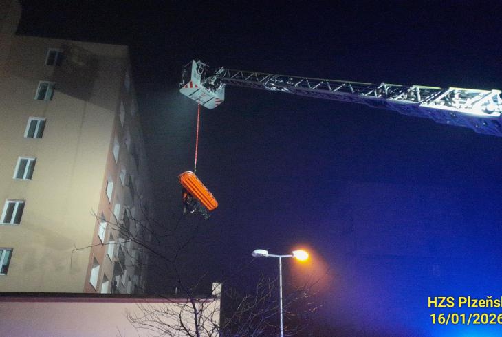 V pátek v 0:56 v Třemošné, Sídlišti, hasiči zasahovali u záchrany osoby, která spadla, případně skočila, na střechu kotelny u panelového domu.