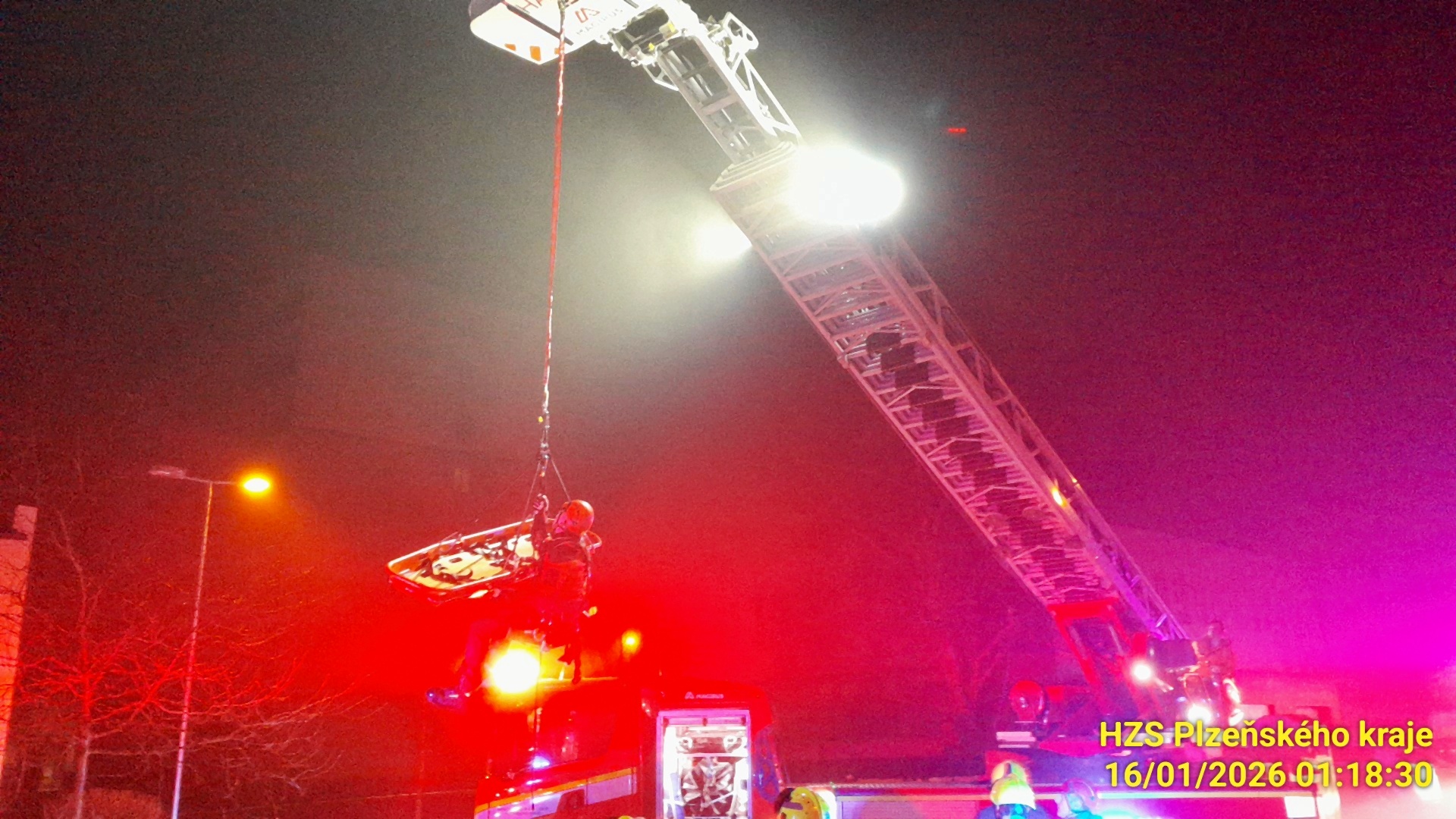 K zásahu byla použita výšková technika, lezec a záchranná vana podvěšená pod výškovou technikou. Po bezpečném snesení byla osoba předána do péče zdravotnické záchranné služby.