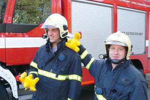 Hasiči si od seniorů převzali plyšové hračky. Při zásazích budou pomáhat dětem