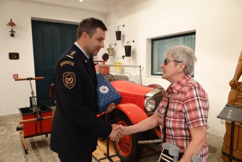 Od náměstka ředitele HZS MSK pro prevenci a civilní nouzovou připravenost plk. Ing. Miloše Střelky dostala několik vkusných dárků, například knihu hasičských fotografií z Moravskoslezského kraje, Hasičské pohádky a knihu o historii Ostravy.