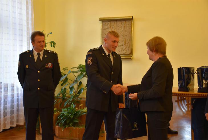 Michala Brousila a ředitele HZS Jihočeského kraje, územního odboru Písek plk. Luboše Broulima přijali starostka Eva Vanžurová a místostarosta Josef Knot a Michalovi pogratulovali za vynikající reprezentaci města Písek.