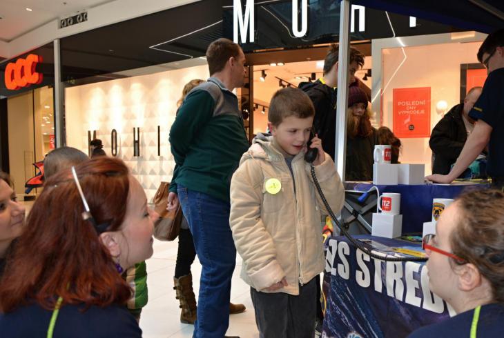 O stánek hasičů měli tradičně největší zájem ti nejmenší, kteří si především chtěli vyzkoušet ohlášení požáru a komunikaci s operátorkou tísňové linky z fiktivní telefonní budky na ulici.