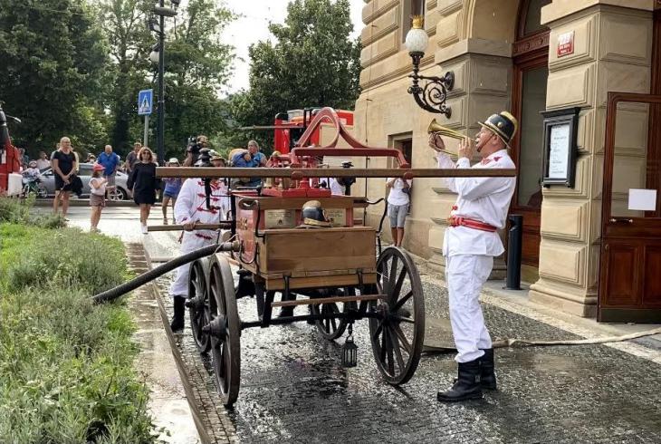 Hasiči si tak společně se zaměstnanci divadla připomněli 140. výročí požáru Národního divadla, které připadá na 12. srpna 2021.