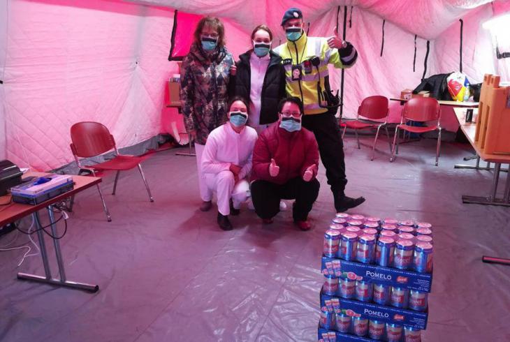 Čokoládovna Troubelice věnovala příslušníkům na kontrolních stanovištích u uzavřené oblasti 130 svačinových balíčků a suroviny pro přípravu horké čokolády do hrnečku.