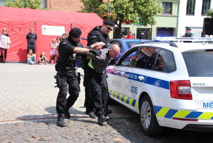 U stánku říčanského dobrovolného sboru si děti mohly zkusit hašení makety domu pomocí džberové stříkačky. Po celé dopoledne bylo na náměstí k vidění mnoho dynamických ukázek, které předvedla jak Městská Policie Říčany, tak i Policie ČR.