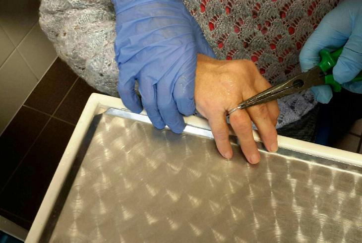 Proto na tamním chirurgickém oddělení byli tentokrát i v roli lékařů, kteří pomocí brusky a kleštiček těsné dva prstýnky (jeden stříbrný a druhý prsten z chirurgické oceli) z napuchlého prstu dané osobě odstranili.