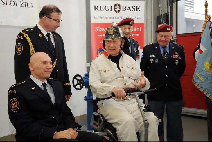Zástupci nadace, HZS i herec Josef Dvořák, coby “hasič z kultovního seriálu Návštěvníci”, ředali Liborovi Bohdaneckému revoluční invalidní vozík Segway Freee.
