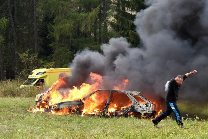 V určeném prostoru letecké havárie připravili hasiči několik autovraků a několik desítek částí autovraků, které simulovaly trosky zříceného letadla. Na dvou místech v době zahájení cvičení trosky začaly hořet.