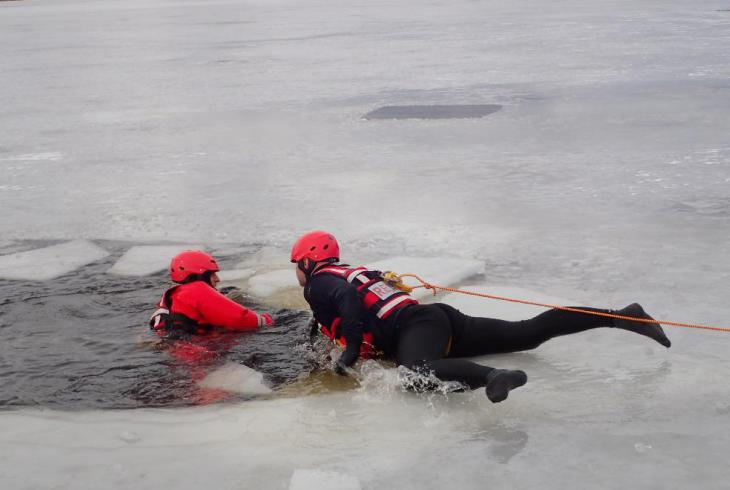 V rámci výcviku na Lipně v Dolní Vltavici byla vyhlášena neoficiální soutěž o nejlepší ukázku záchrany ze zamrzlé vodní plochy. Jednou z ukázek byla simulace při výjezdu ze stanice, kdy byl záchranář vybaven všemi prostředky pro záchranu.