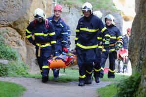Středočeští hasiči cvičili záchranu osob z Via Ferraty ve Slaném